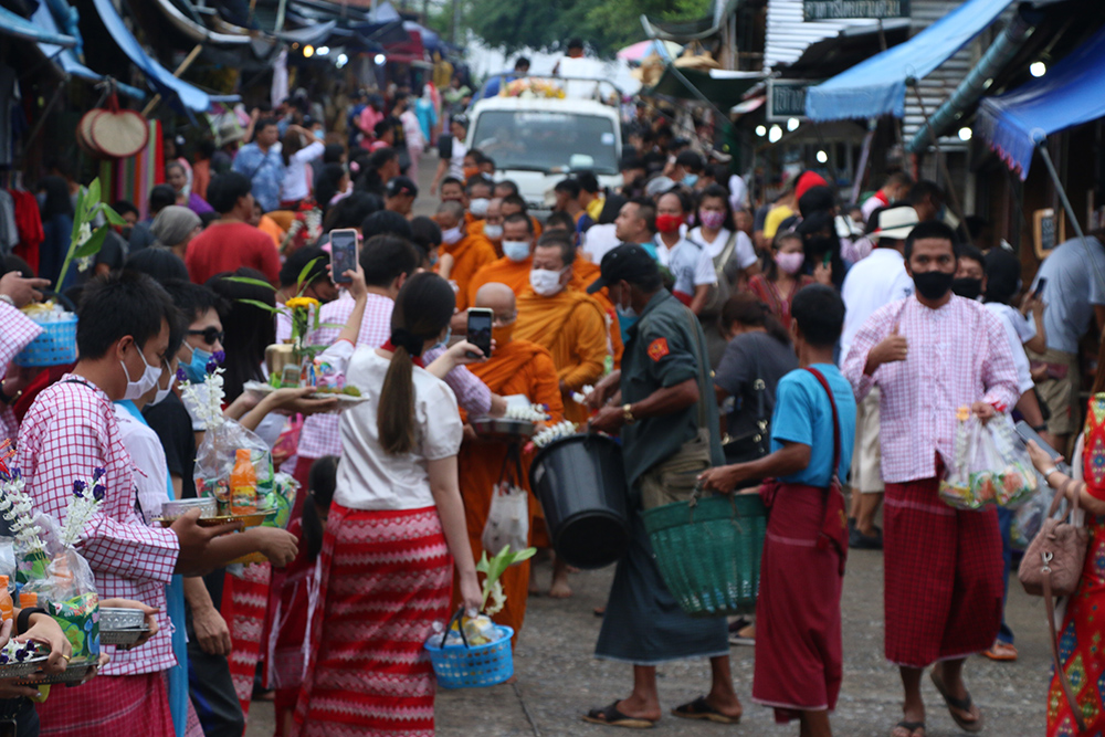 กาญจนบุรี นักท่องเที่ยวยังคงร่วมทำบุญใส่บาตร และเที่ยวชมสะพานมอญท่ามกลางฝนที่ตกอย่างต่อเนื่องตั้งแต่เมื่อคืนที่ผ่านมา ขณะที่จังหวัดกาญจนบุรี สั่ง 2 อำเภอ เฝ้าระวังน้ำท่วมฉับพลัน น้ำป่าไหลหลาก 30 ก.ค.-3 ส.ค.66