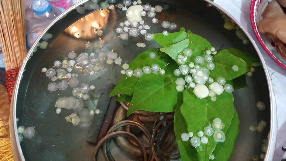 ส่วนนักเสี่ยงโชคต่างส่องเลขจากขันน้ำมนต์ ในพีธี ไหว้ครูประจำปี หลวงพ่อสมชาย เจ้าคณะตำบลสวนแตงและเจ้าอาวาสวัดไผ่แปลกแม่ พระเกจิดังเมืองสุพรรณบุรีเจ้าตำรับสีผึ้งเมตตามหานิยม 108 ฤ สามโลก นำเลขเด็ดไปเสี่ยงโชค (เลขตามภาพ) ขณะที่กำลังประกอบพิธีไหว้ครู มีชาวบ้านที่มาร่วมพิธี มีแสดงอาการของขึ้นโดยไม่รู้ตัว