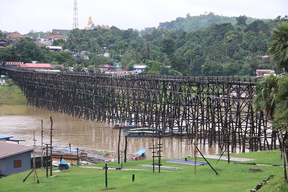 วันที่ 4 สิงหาคม 2566 จากเหตุการณ์ที่มีฝนตกลงมาในพื้นที่อำเภอสังขละบุรี ติดต่อกันมานานกว่า 1 สัปดาห์ โดยเฉพาะในพื้นที่ตำบลไล่โว่ ซึ่งตั้งอยู่ในพื้นที่เขตรักษาพันธุ์สัตว์ป่าทุ่งใหญ่นเรศวร ที่มีความอุดมสมบูรณ์และเป็นต้นกำเนิดของแม่น้ำซองกาเลีย จนส่งผลให้ระดับน้ำในแม่น้ำซองกาเลียสูงขึ้นและมีกระแสน้ำไหลแรงขึ้น จนพัดมาท่อนไม้ กิ่งไม้ เศษสวะ รวมทั้งขยะจำนวนมากไหลลงมาในแม่น้ำและพัดมาติดกับตอม่อสะพานไม้อุตตมานุสรณ์ หรือสะพานมอญ สถานที่ท่องเที่ยวสำคัญของอำเภอสังขละจังหวัดกาญจนบุรี