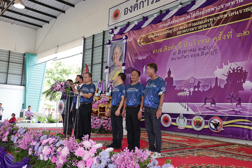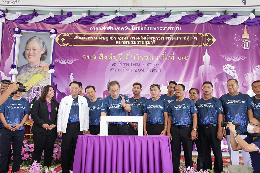 วันเสาร์ที่ ๕ สิงหาคม ๒๕๖๖ เวลา ๐๘.๓๐ น. นายสุพจน์ ยศสิงห์คำ ผู้ว่าราชการจังหวัดสิงห์บุรี เป็นประธานในพิธีเปิดโครงการแข่งขันกีฬาเทควันโดชิงถ้วยพระราชทาน กรมสมเด็จพระเทพรัตนราชสุดาฯ สยามบรมราชกุมารี องค์การบริหารส่วนจังหวัดสิงห์บุรี ถิ่นวีรชน แชมป์เปี้ยนชิพ ครั้งที่ ๑๒ ประจำปี ๒๕๖๖ ณ อาคารเอนกประสงค์ สนามกีฬาองค์การบริหารส่วนจังหวัดสิงห์บุรี โดยมี นายสัมฤทธิ์ กองเงิน รองผู้ว่าราชการจังหวัดสิงห์บุรี นายศุภวัฒน์ เทียนถาวร นายกองค์การบริหารส่วนจังหวัดสิงห์บุรี เป็นผู้อัญเชิญถ้วยพระราชทาน ฯ พร้อมด้วย ผู้อำนวยการสำนักงานการกีฬาแห่งประเทศไทยสิงห์บุรี นายกสมาคมกีฬาแห่งจังหวัดสิงห์บุรี หัวหน้าส่วนราชการ สมาชิกสภาองค์การบริหารส่วนจังหวัดสิงห์บุรี นักกีฬา ผู้ฝึกสอนและเข้าร่วมพิธีเปิดการแข่งขันเทควันโดชิงถ้วยพระราชทาน 2 ประเภท ประกอบด้วย ประเภทท่ารำและประเภทต่อสู้