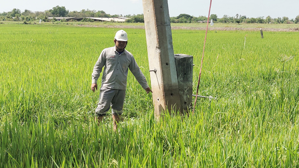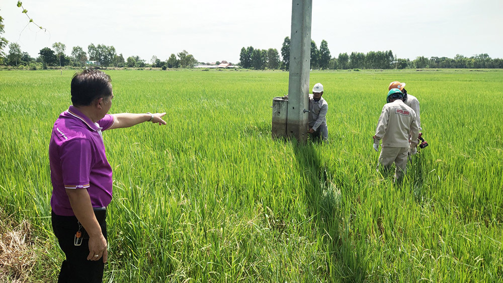 นายสาโรจน์ แช่มช้อย ผู้จัดการการไฟฟ้าส่วนภูมิภาคจังหวัดสุพรรณบุรี กล่าวว่าได้รับแจ้งจากชาวบ้านว่ามีเสาไฟฟ้าแรงสูงเอน จะล้มทับนาข้าว เกรงจะเกิดความเสียหายและเกิดอันตราย จึงสั่งการให้เจ้าหน้าที่ชุดพาโทนระบบจำหน่ายมาตรวจสอบพบว่าเสาไฟฟ้าแรงสูงประมาณ 50 ต้นถูกคนร้ายโจรกรรมน็อตสตับ หรือน็อตขันตอหม้อไปประมาณ 50 ชุด ความความเสียหายของน็อตตอหม้อจริงๆแล้วน็อตตัวหนึ่งประมาณ 300 กว่าบาท 50 ตัวก็ประมาณเกือบ 20,000 บาท แต่ปัญหาคือถ้าเราไม่รู้เกิดมีลมพายุมา จะให้ระบบจำหน่ายเราขาดความมั่นคง เสาล้มหักเป็นระยะทางไกลได้ คือประมาณ 50 ต้น วันเราจึงระดมชุดมาแก้ไข