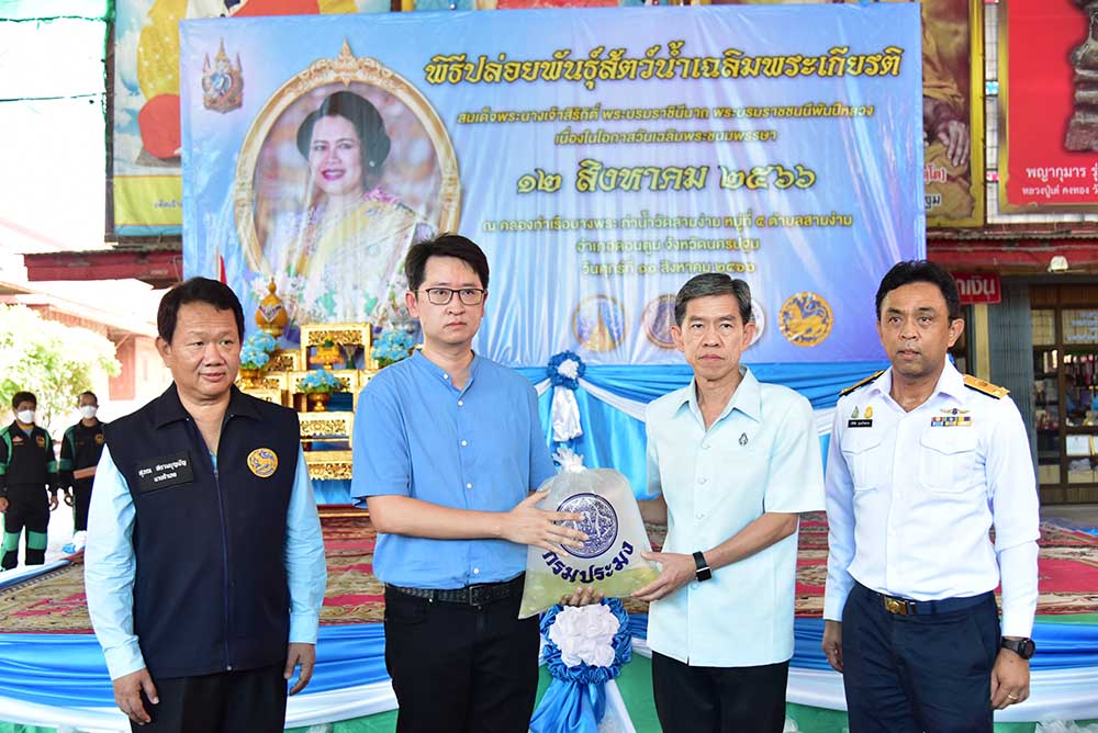 จังหวัดนครปฐม จัดพิธีปล่อยพันธุ์สัตว์น้ำ เนื่องในวันเฉลิมพระชนมพรรษา สมเด็จพระนางเจ้าสิริกิติ์ พระบรมราชินีนาถ พระบรมราชชนนีพันปีหลวง เพื่อเฉลิมพระเกียรติและถวายเป็นพระราชกุศล ตลอดจนเป็นการอนุรักษ์ทรัพยากร และเพิ่มพูนปริมาณสัตว์น้ำในแหล่งน้ำ