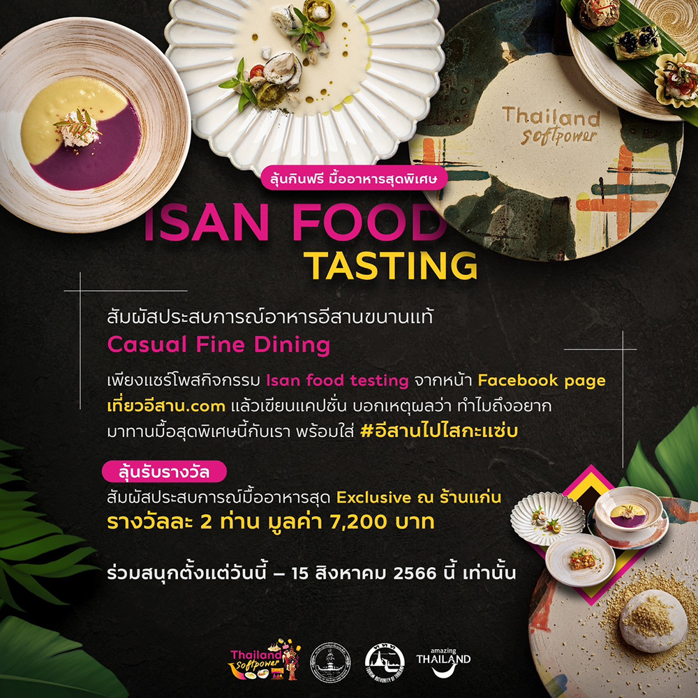 ททท. ร่วมมือจังหวัดขอนแก่น ยกระดับอาหารไทย ตอกย้ำคอนเซปต์ Year of Gastronomy กับงาน Thailand Soft Power : Isan Food Tasting ร่วมลุ้นอาหารมื้อพิเศษจากเชฟมากฝีมือ ฟรี!