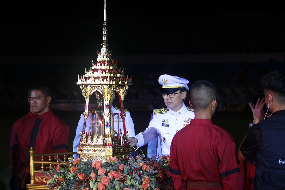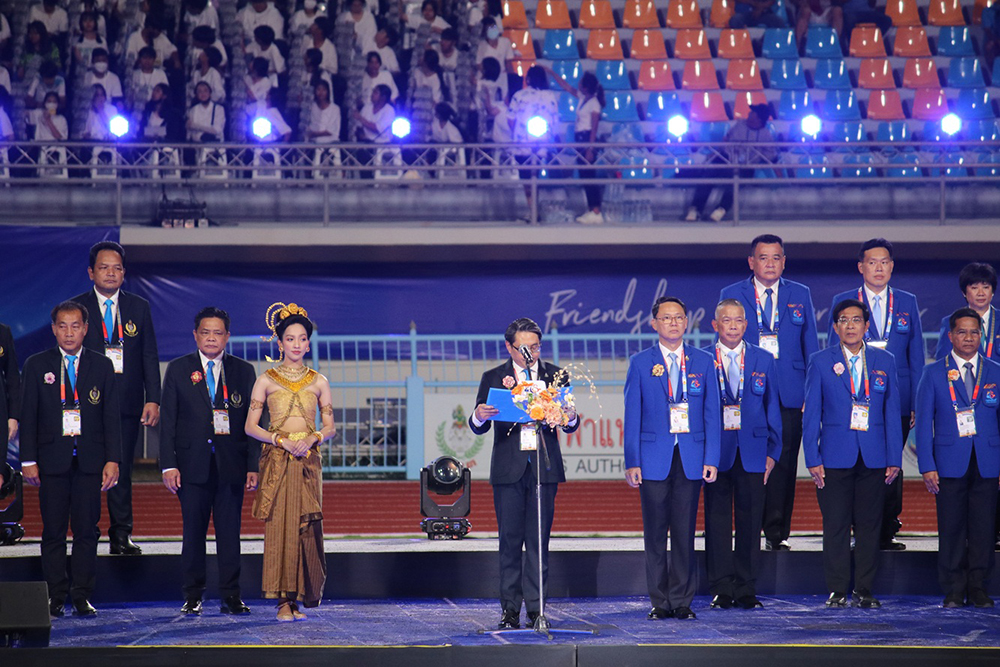 ทั้งนี้ ก่อนพิธีการเปิดอย่างเป็นทางการได้มีการแสดง จากเยาวชนในจังหวัดกาญจนบุรี รวม 1,000 คนจำนวน 5 ชุดและขบวนพาเหรดผู้บริหาร นักกีฬา ผู้ฝึกสอน จากทั้ง 77 จังหวัด เข้ามายังสนามเพื่อร่วมในพิธีเปิดกีฬาอย่างเป็นทางการและมีพิธีอัญเชิญไฟพระฤกษ์จากนักกีฬาทีมชาติที่สร้างผลงานดีเด่นให้ประเทศไทย เข้าสู่สนาม โดย นางสาวปานวาศ กิมสร้าง นายชนกพล เจียมสุขใจ พันตำรวจโท วันสว่าง สวัสดี และจุดคบเพลิงโดยนาวาโทหญิงอารีย์ วิรัฐถาวร ซึ่งพิธีเปิดกีฬาในครั้งนี้ได้จัดขึ้นอย่างยิ่งใหญ่อลังการ