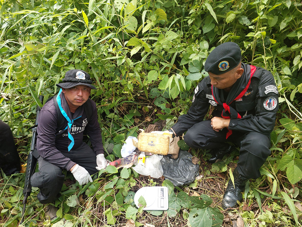 15 สิงหาคม 2566 กองร้อยทหารพราน 3201 กองบังคับการควบคุม ทหารพรานศูนย์ปฏิบัติการกองทัพภาค3 จัดกำลังหนึ่งชุด ออก ลาดตระเวน/เฝ้าตรวจ เพื่อป้องกันและสกัดกั้นการกระทำผิดตาม พ.ร.บ.ยาเสพติด และสิ่งผิดกฏหมายอื่น บริเวณช่องทางธรรมชาติแก่งตุ๋ม บ.แก่งตุ๋ม ม.3 ตำบลท่าตอน อำเภอแม่อาย จังหวัดเชียงใหม่ ได้พบชายต้องสงสัยเดินสะพายกระเป๋าย่าม ขึ้นมาจากลำห้วยหมากลางฯ จำนวน 1 คน จึงได้แสดงตัวเพื่อขอตรวจค้น แต่ชายคนดังกล่าวเมื่อเห็น จนท.ได้อาศัยความชำนาญในพื้นที่วิ่งหลบหนีกลับไปยังทิศทางฝั่ง ประเทศพม่า โดยระหว่างวิ่งหลบหนีได้สะดุดล้มพงหญ้า ทำให้กระเป๋าย่ามที่สะพายอยู่ตกทิ้งไว้ที่เกิดเหตุ เจ้าหน้าที่ได้เข้าตรวจสอบกระเป๋าใบดังกล่าวพบว่าภายในมีถุงดำห่อหุ้มด้วยถุงพลาสติกใส จำนวน 1 ห่อ