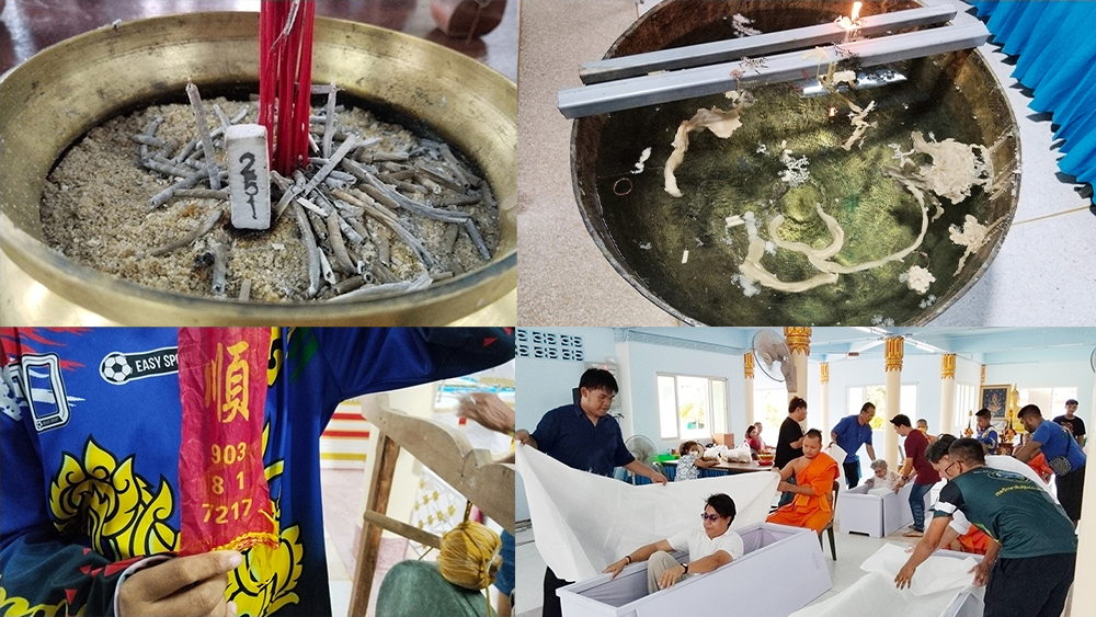 สุพรรณบุรี ส่องเลขหางประทัดพิธีสวดบูชานพเคราะห์นอนโลงอาบน้ำมนต์ต้องธรณีสาร