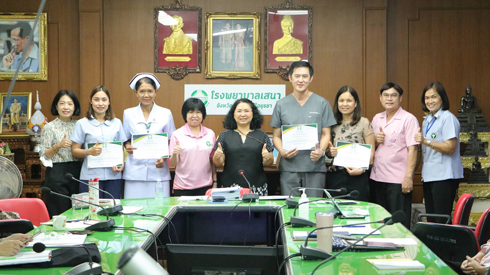 วันที่ 15 สิงหาคม 2566 แพทย์หญิงชนิญญา พัฒนศักดิ์ภิญโญ ผู้อำนวยการโรงพยาบาลเสนา มอบใบประกาศเกียรติคุณ บุคคลดีเด่นประจำเดือนกรกฎาคม 2566 แก่นายแพทย์ณัฎฐพล เผด็จสุวันนุกูล นายแพทย์เชี่ยวชาญ รองผู้อำนวยการกลุ่มภารกิจด้านปฐมภูมิ , คุณเทียมจันทร์ พุ่มขุน พยาบาลวิชาชีพชำนาญการพิเศษ หัวหน้าหอผู้ป่วยศัลยกรรมชาย , คุณสายสมร บุญรอด นักกายภาพบำบัดชำนาญการ หัวหน้ากลุ่มงานกายภาพบำบัด และคุณสุวิรัส กิจฉัย นักวิชาการสาธารณสุขปฏิบัติการ กลุ่มงานเวชกรรมสังคม ได้รับการยกย่องเป็นบุคคลดีเด่น ตัวอย่างที่ดี ในการทำความดีสืบไป ณ ห้องประชุมทับทิมสยาม โรงพยาบาลเสนา จังหวัดพระนครศรีอยุธยา