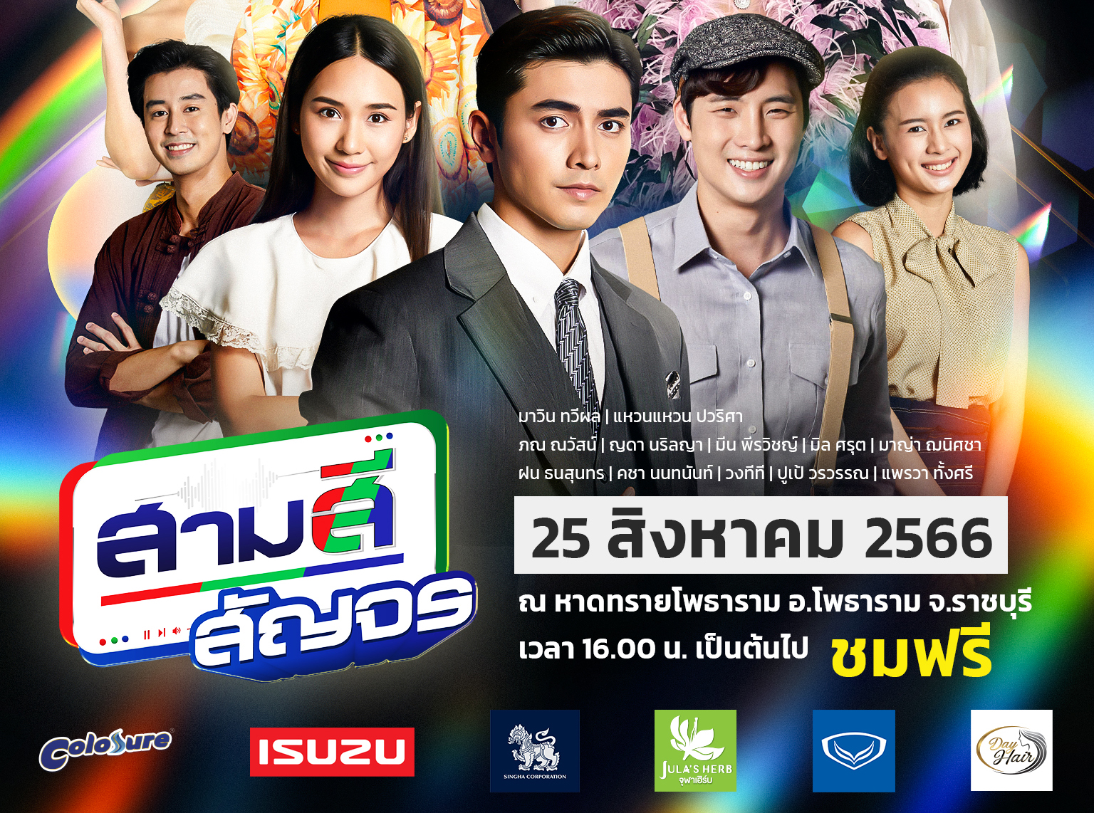 รายการข่าวสามสี ร่วมกับ เทศบาลเมืองโพธาราม สร้างสรรค์สุขกับคอนเสิร์ต ‘สามสี สัญจร’ ในโครงการ “เที่ยว กิน นอน เมืองคนสวย โพธาราม” ณ.หาดทรายโพธาราม อ.โพธาราม จ.ราชบุรี ในวันศุกร์ที่ 25 สิงหาคม 2566 ตั้งแต่เวลา 16:00 น. เป็นต้นไป