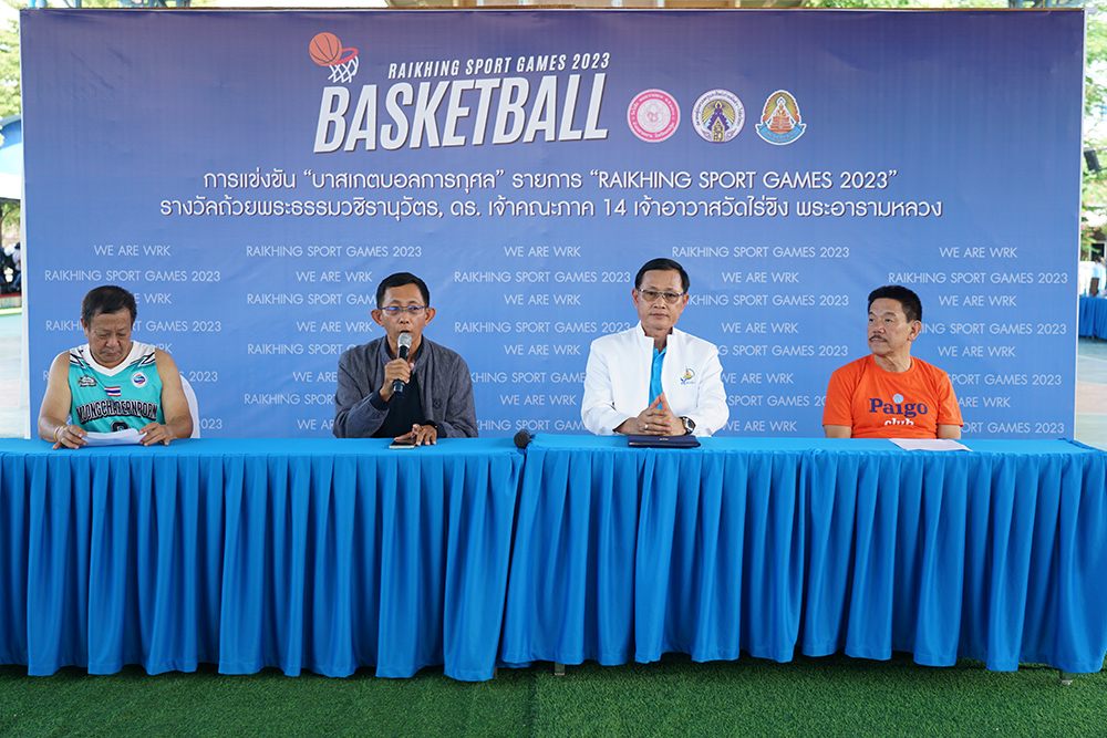 แถลงข่าวจัดการแข่งขัน “บาสเกตบอลการกุศล” ในรายการ “RAIKHING SPORT GAMES 2023” รางวัลถ้วยพระธรรมวชิรานุวัตร, ดร. เจ้าคณะภาค 14 เจ้าอาวาสวัดไร่ขิง พระอารามหลวง