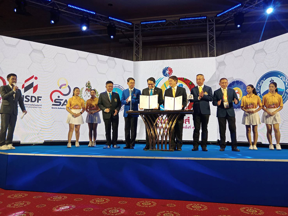 วันที่ 29 สิงหาคม 2566 ที่โรงแรมเฟลิกซ์ ริเวอร์แคว รีสอร์ท จังหวัดกาญจนบุรี ดร.ก้องศักด ยอดมณี ผู้ว่าการการกีฬาแห่งประเทศไทย เป็นประธานในพิธีแถลงข่าวส่งมอบการเป็นเจ้าภาพกีฬาแห่งชาติครั้งที่ 49 “จันท์เกมส์” และการแข่งขันกีฬาคนพิการแห่งชาติครั้งที่ 39 “อัญมณีเกมส์” โดยมี ร้อยโท ทศพล ไชยโกมินทร์ ผู้ว่าราชการจังหวัดกาญจนบุรี ให้การต้อนรับคณะจังหวัดจันทบุรี และการกีฬาแห่งประเทศไทย พร้อมด้วย นายประชุม บุญเทียม รองผู้ว่าการการกีฬาแห่งประเทศไทย ฝ่ายกีฬาเป็นเลิศและวิทยาศาสตร์การกีฬา นายมนต์สิทธิ์ ไพศาลธนวัฒน์ ผู้ว่าราชการจังหวัดจันทบุรี ว่าที่ร้อยตรี ศุภมงคล บูชาถ่ายเทศ รองผู้ว่าราชการจังหวัดกาญจนบุรี นายธนพล กิจกาญจน์ นายกองค์การบริหารส่วนจังหวัดจันทบุรี และ นายรัฐวิทย์ ตั้งเกียรติพชร นายกสมาคมกีฬาแห่งจังหวัดจันทบุรี ร่วมกันแถลงข่าวความพร้อมของจังหวัดจันทบุรี ในการเป็นเจ้าภาพจัดการแข่งขันกีฬาแห่งชาติ ครั้งที่ 49(พ.ศ.2567) และการแข่งขันกีฬาคนพิการแห่งชาติ ครั้งที่ 39 (พ.ศ.2568)