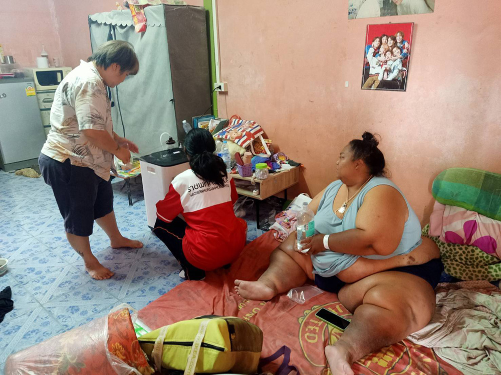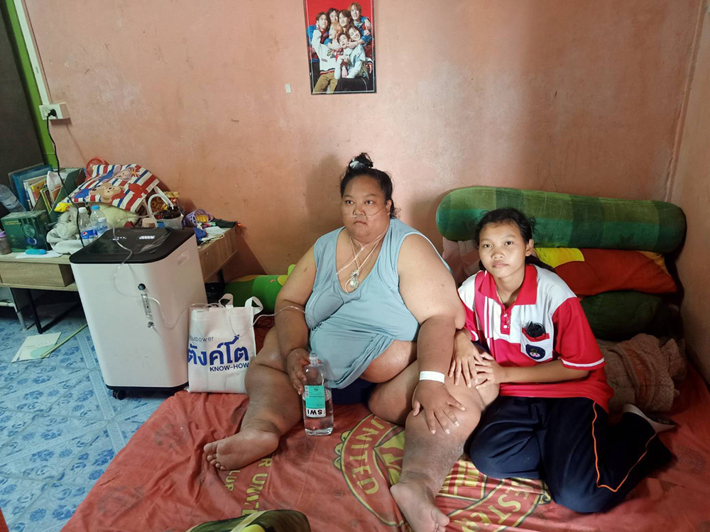 อยุธยา วอนผู้ใจบุญช่วยหญิงอ้วน หนักกว่า.180 กิโล ป่วย.7 โรคอยู่กับลูกสาววัย13 ปี