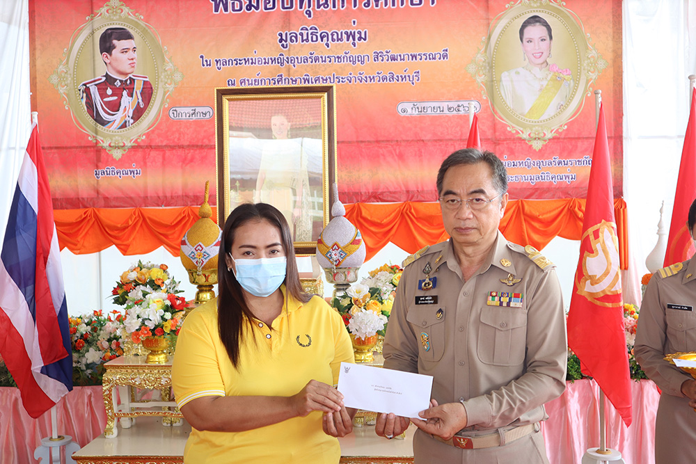 วันที่ 1 กันยายน 2566 เวลา 09.30 น. นายสุพจน์ ยศสิงห์คำ ผู้ว่าราชการจังหวัดสิงห์บุรี นายกเหล่ากาชาดจังหวัดสิงห์บุรี เป็นประธานพิธีมอบทุนการศึกษาสำหรับเด็กออทิสติก และเด็กพิการในมูลนิธิคุณพุ่ม ปีการศึกษา 2566 จำนวน 115 ทุน ๆละ 5,000 บาท ณ อาคารเอนกประสงค์ ศูนย์การศึกษาพิเศษประจำจังหวัดสิงห์บุรี โดยมี นายสัมฤทธิ์ กองเงิน นายวราดิศร อ่อนนุช รองผู้ว่าราชการจังหวัดสิงห์บุรี นางจิราภรณ์ กองเงิน รองนายกเหล่ากาชาดจังหวัดสิงห์บุรี นายปัญญา ใช้เฮ็ง นายอำเภอเมืองสิงห์บุรี นางอารีย์ ศีกดิ์ดามพ์นุสนธิ์ นางรัชนี ภูวเศรษฐ ผู้ช่วยนายกเหล่ากาชาดจังหวัดสิงห์บุรี ผู้บริหารท้องถิ่น ผู้บริหารการศึกษา ข้าราชการ ครู เจ้าหน้าที่เหล่ากาชาดจังหวัดสิงห์บุรี นักเรียน และผู้ปกครอง ร่วมพิธีดังกล่าว