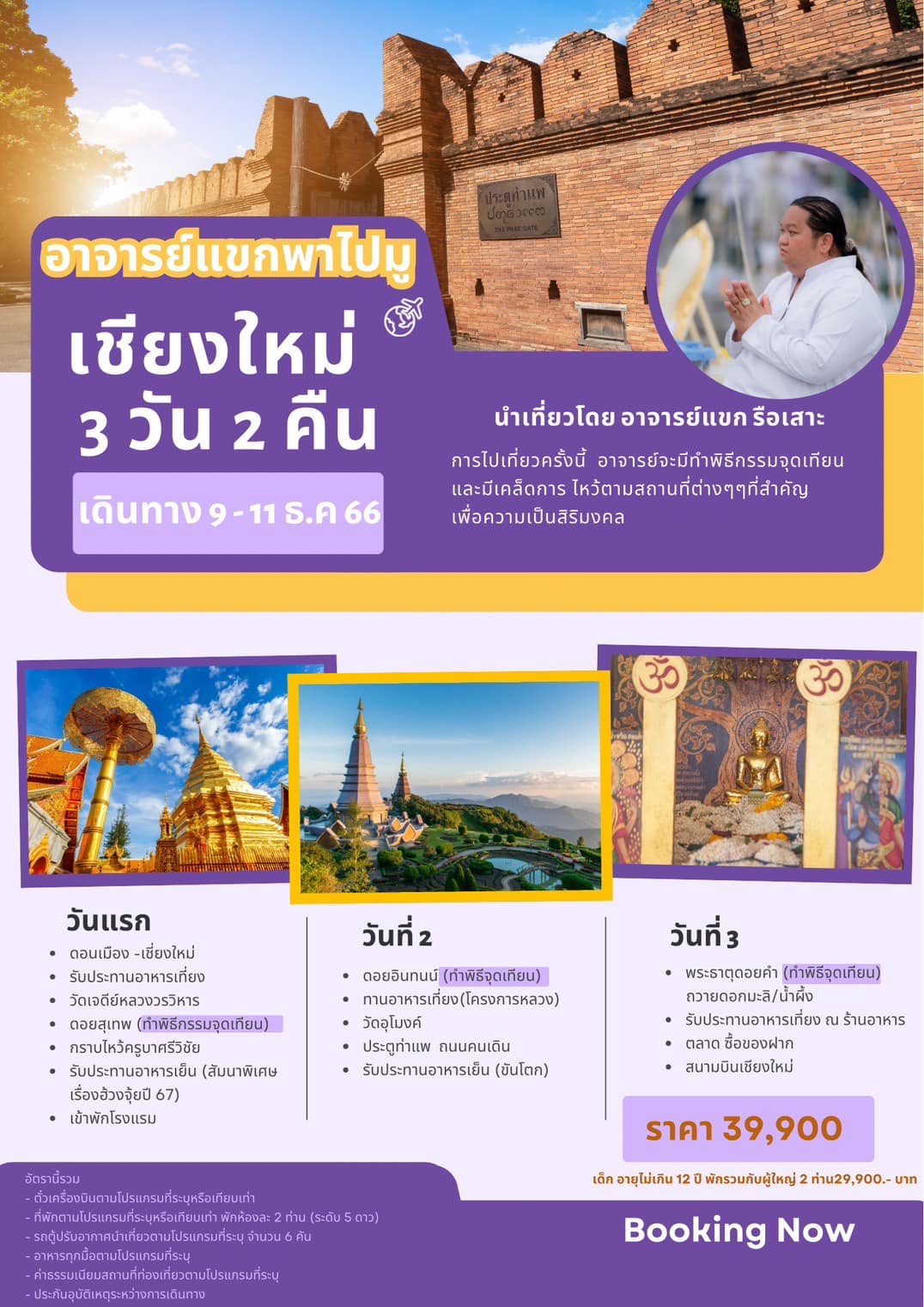 เที่ยวยังไงให้ปังๆ อาจารย์แขกพาไปมู เชียงใหม่3วัน2คืน เดินทางวันเสาร์ที่9ถึงวันจันทร์ที่ 11 ธันวาคม 2566