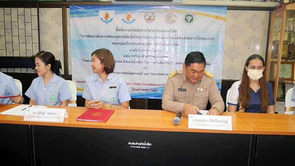 วพบ.สุพรรณบุรี และวพบ.จักรีรัช คณะพยาบาลศาสตร์ สถาบันพระบรมราชชนก ลงนามความร่วมมือทางวิชาการ ระหว่าง อบต.วังน้ำเขียว รพ.สต.ต.วังน้ำเขียว และรพ.สต. บ้านหนองปลาไหล อำเภอกำแพงแสน จังหวัดนครปฐม หัวข้อเรื่อง “รูปแบบการพัฒนาศักยภาพของชุมชนท้องถิ่นในการจัดการระบบอาหารเพื่อส่งเสริมภาวะโภชนาการของกลุ่มเปราะบางทางโภชนาการในชุมชนไทย”