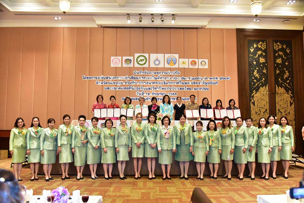 สมาคมสตรีนักธุรกิจและวิชาชีพแห่งประเทศไทย-นครปฐม จับมือภาคราชการ เอกชนและสมาคม ลงนามบันทึกข้อตกลงความร่วมมือโครงการสนับสนุนความเท่าเทียมทางเพศ ในที่ทำงาน เพื่อสร้างความตระหนักรู้และการยอมรับความแตกต่างด้านเพศภาวะ รวมถึงเพิ่มบทบาทของผู้ประกอบการการสตรีในสถานประกอบการ