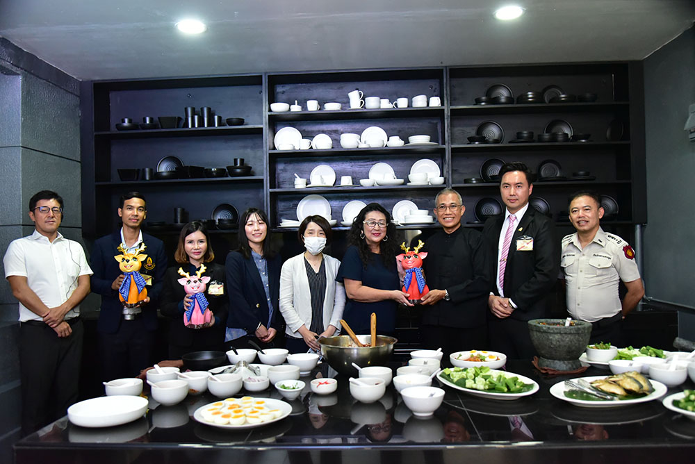 นอกจากนี้ ได้ร่วมฝึกทำอาหารไทย ได้แก่ ยำส้มโอ และน้ำพริกปลาทู โดยมีอาจารย์สุทธิพงษ์ สุริยะ หรือ “อาจารย์ขาบ” ฟู้ดสไตลิสต์ชื่อดัง กรรมการผู้จัดการ บริษัท ขาบสไตล์ จำกัด คอนเซ็ปต์ดีไซเนอร์แถวหน้าในวงการอาหารของประเทศไทย “นำ Local สู่ เลอค่า” มาเป็นวิทยากรฝึกอบรม สร้างความประทับใจให้แก่คณะศึกษาดูงานเป็นอย่างมาก