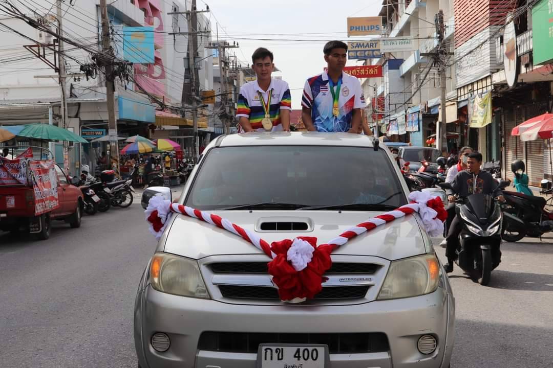 วันที่ 22 กันยายน 2566 เทศบาลเมืองสิงห์บุรี โดยนายณรงค์ศักดิ์ วิงวอน นายกเทศมนตรีเมืองสิงห์บุรี คณะผู้บริหาร สมาชิกสภาเทศบาล จัดให้พิธีแสดงความยินดี โดยจัดขบวนแห่ทั้ง 2 นักกีฬา รอบตลาดสิงห์บุรี เพื่อให้ชาวเทศบาลฯ และชาวสิงห์บุรีได้ร่วมแสดงความยินดี กับนักเรียนโรงเรียนในสังกัดเทศบาลเมืองสิงห์บุรี และแวะกราบไหว้ขอพรศาลหลักเมือง