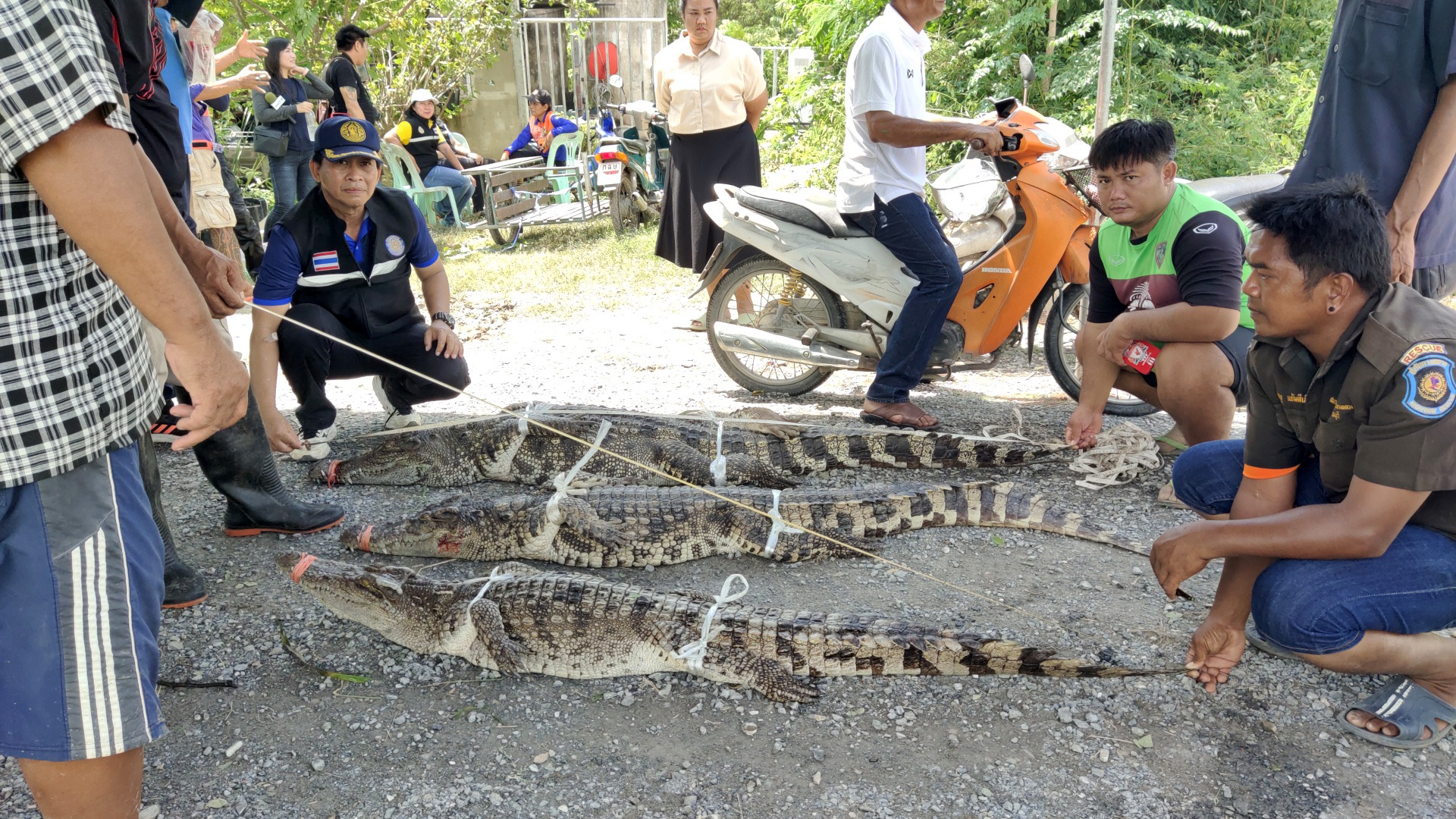 พอตอนเช้าได้ประสานทางประมงจังหวัดและได้ขอความร่วมมือไปกับหน่วยงานที่มีความชำนาญในการจับจระเข้ ซึ่งก็มาพร้อมกันตั้งแต่เช้า ตอนนี้ก็เคลียร์ในพื้นที่ใกล้เคียงและมีการจับเพิ่มมาได้อีก ตอนนี้ในพื้นที่ราบได้เคลียร์พื้นที่หมดแล้วเหลือแต่ในหนองน้ำธรรมชาติ ที่มี 7 บ่อ ซึ่งเคลียร์ไปแล้ว 5 บ่อ ตอนนี้เหลืออีก 2 บ่อ ก็คิดว่าน่าจะเสร็จภายในวันนี้ หลังจากนี้ก็จะวางกำลังตรวจตรา ให้ช่วยกันเฝ้าระวัง เบื้องต้นจากการตรวจสอบจระเข้ ในบ่อน่าจะมีประมาณ 70 ตัว ตอนนี้จับได้แล้ว 26 ตัว อยู่ในบ่ออีก 40 กว่าตัว ตอนนี้น่าจะเหลืออีก 4-5 ตัวที่ตามจับอยู่ พร้อมกันนี้เราต้องเช็คข้อมูลให้ถูกต้องอีกทีว่าจริงๆแล้วมีจระเข้ ที่อยู่ในบ่อมีทั้งหมดเท่าไหร่แล้วหลุดไปเท่าไหร่ เพื่อให้เกิดความมั่นใจว่าเราเคลียร์ว่าจับได้หมดแล้วซึ่งตนได้กำชับเจ้าหน้าทื่ชุดจับให้เร่งจับให้หมดถ้าไม่หมดก็ให้เหลือน้อยที่สุดพร้อมกันนี้ก็ให้เฝ้าระวังกันอย่างเต็มที่ทั้งนี้เพื่อความปลอดภัยของประชาชนในพื้นที่