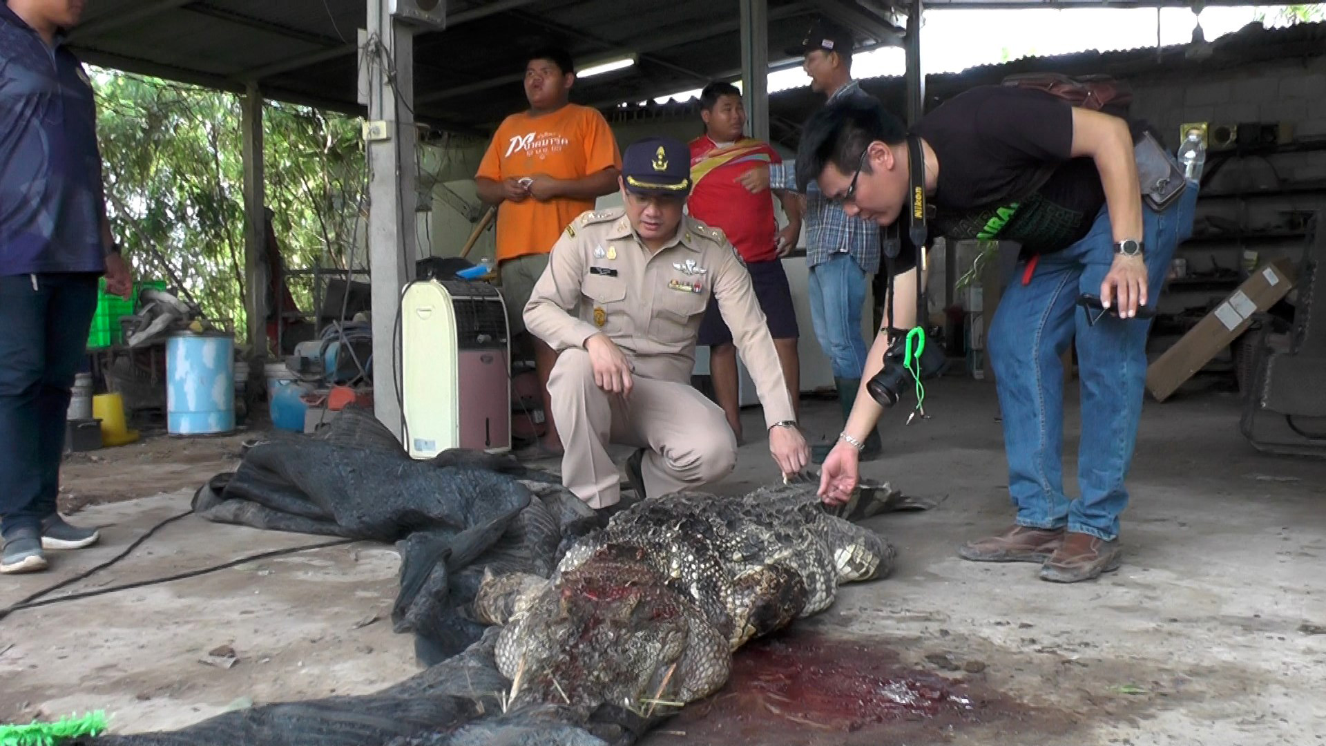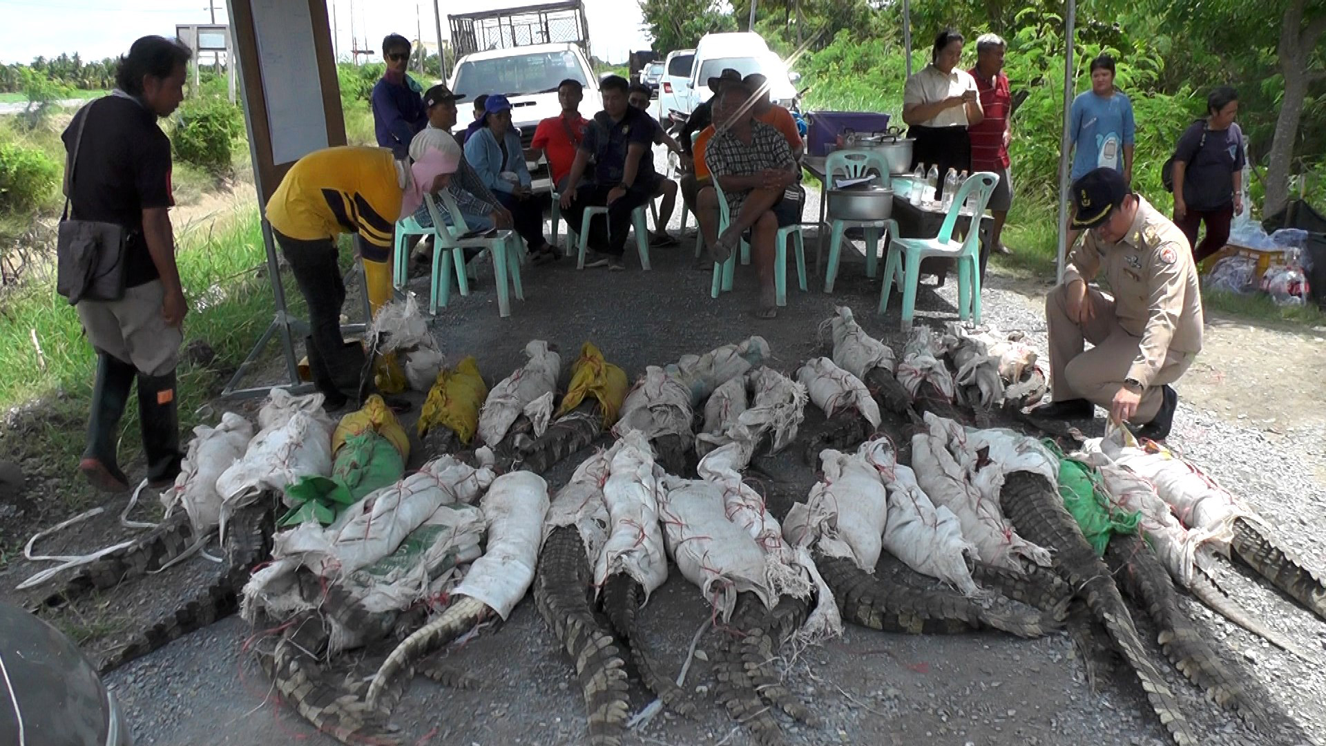 จระเข้ที่เลี้ยงไว้ทั้งหมด 10 บ่อ มีจระเข้กว่า 300 ตัว จระเข้ที่หลุดไปคาดว่าน่าจะ 30 กว่าตัว ซึ่งตอนนี้เจ้าหน้าที่และชาวบ้านได้ระดมกำลังจับมาได้แล้วกว่า 20 ตัว ซึ่งจระเข้ที่ฟาร์มตนได้เลี้ยงไว้เพื่อส่งโรงงานทำหนังจระเข้ ซึ่งวันนี้เป็นวันครบกำหนดจับจระเข้ที่ฟาร์มพอดี แต่เมื่อคืนได้เกิดลมพายุพัดกระหน่ำทำให้จระเข้หลุดออกจากบ่อและเป็นครั้งแรกที่ตนเองเลี้ยงจระเข้มา 14 ปี ครั้งนี้เป็นครั้งแรกที่มีพายุพัดกำแพงบ่อจระเข้พัง มูลค่าความเสียหายคาดว่าน่าเกือบ 2 แสนบาท
