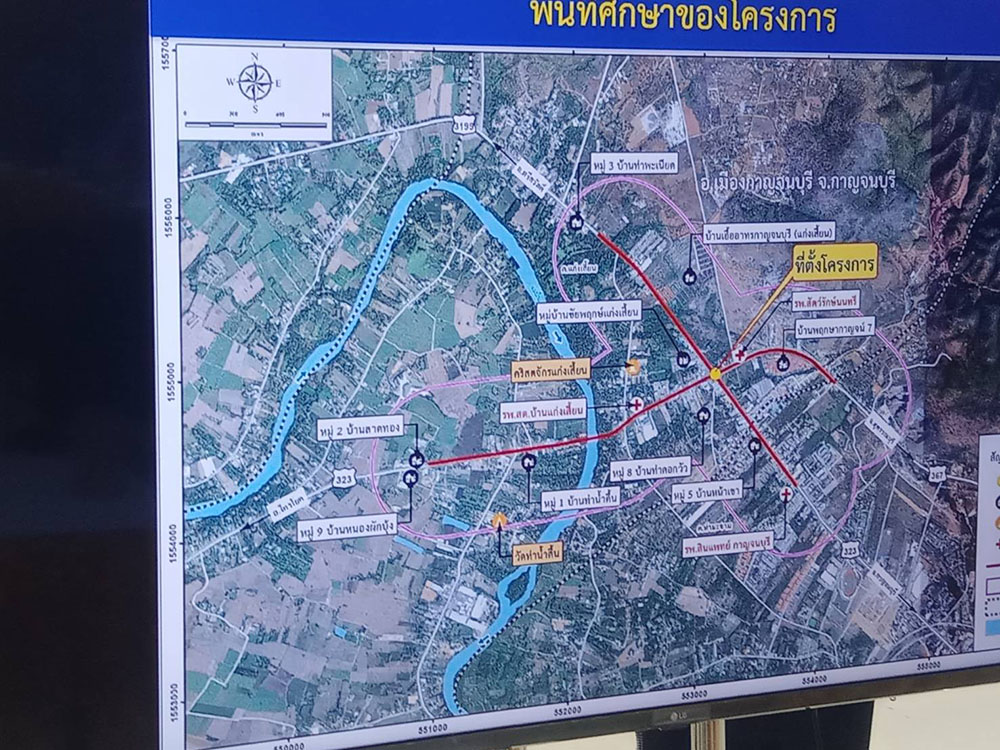 ต่อมานายสุรพงษ์ ปิยะโชติ และคณะได้เดินทางไปยังบริเวณพื้นที่โครงการก่อสร้างสะพานข้ามแยกวังสารภีที่ต้องหยุดชะงักลงเนื่องจากมีกลุ่มชาวบ้านมาคัดค้านทำให้โครงการดังกล่าวต้องหยุดชะงัก จากนั้นนายสุรพงษ์ ปิยะโชติ ห้องประชุม องค์การบริหารส่วนจังหวัดกาญจนบุรี นายสุรพงษ์ ปิยะโชติ รัฐมนตรีช่วยว่าการกระทรวงคมนาคม