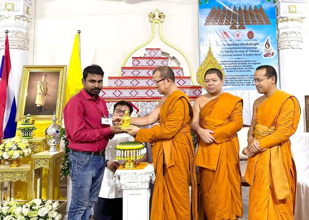 ต่อจากนั้นพระเดชพระคุณฯ ได้มอบพระพุทธรูปเป็นปฐม ให้นางสาวอัจฉราพรรณ ยาวะประภาส กงสุลใหญ่ ณ เมืองกัลกัตต้า เสร็จแล้วมอบพระพุทธรูปแด่คณะสงฆ์ฝ่ายอินเดีย ประธานชุมชน และตัวแทนครอบครัวชาวพุทธ เข้าร่วมรับมอบพระพุทธรูป อาทิเช่น วัดพุทธพม่า วัดพุทธศรีลังกา ชาวพุทธสมาคมมหาโพธิ์อินเดีย สำนักงานใหญ่ เมืองกัลกัตต้า จำนวน ๗๒ องค์