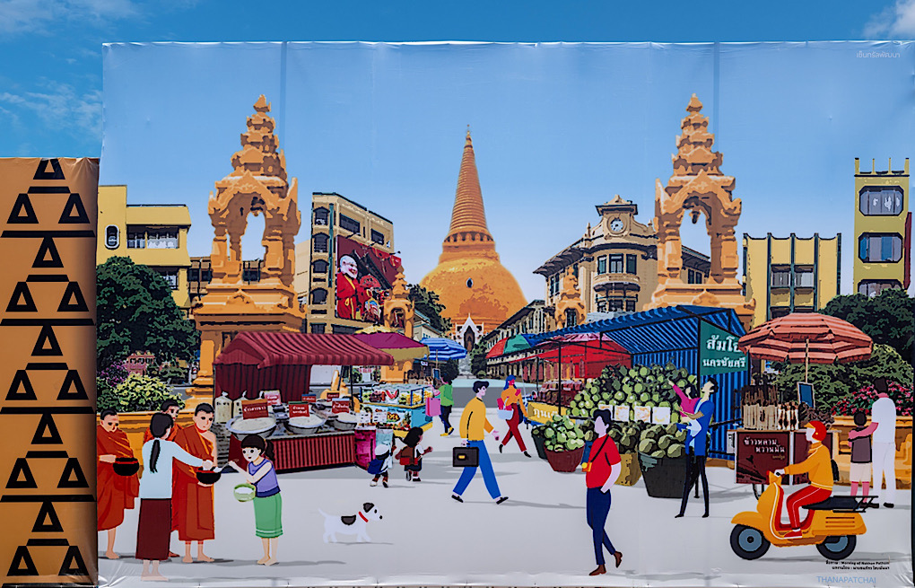 โดย “เซ็นทรัล นครปฐม” ได้ร่วมกับ มหาวิทยาลัยศิลปากร เชิญชวนนักศึกษาร่วมเป็นส่วนหนึ่งในการยกระดับและดึงศักยภาพของจังหวัดนครปฐมให้โดดเด่นในทุกๆ ด้าน พร้อมมุ่งมั่นเป็นศูนย์กลางการใช้ชีวิตที่ครบวงจรของผู้คนในจังหวัด โดยให้ความสำคัญอย่างยิ่งในด้านความยั่งยืนและความร่วมมือกับพลังของคนรุ่นใหม่ แสดงผลงานภาพวาดจิตรกรรม สร้างสรรค์โครงการผลงานศิลปะประดับแนวรั้วโครงการเซ็นทรัล นครปฐมในครั้งนี้ เพื่อเชิดชูประวัติศาสตร์และอัตลักษณ์ของเมืองนครปฐมอันยาวนาน ผสมผสานกับการนำเสนอในรูปแบบร่วมสมัย ทั้งนี้ เพื่อประชาสัมพันธ์ผลงานของนักศึกษาสู่ภาคประชาชนในวงกว้าง และบอกเล่าเรื่องราวความเป็นมาอันสวยงามของจังหวัดนครปฐม ผลงาน Art Story ร่วมสมัย ฝีมือนักศึกษา อาทิ
