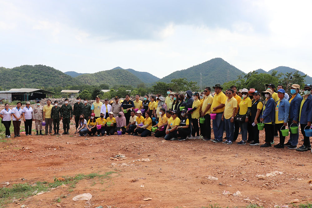 วันที่ 25 กันยายน 2566 ที่บริเวณเขาทอง หมู่ที่ 5 ตำบลแก่งเสี้ยน อำเภอเมือง จังหวัดกาญจนบุรี ทุกภาคส่วนเข้าร่วมปลูกต้นปอเทืองปรับสภาพดินบ่อบริเวณบ่อขยะเชิงเขาทองตามโครงการ“คืนดินดี สู่เขาทอง”โดย นายกรกรณ์ อึ๊งภากรณ์ ผู้อำนวยการกลุ่มงานศูนย์ดำรงธรรมจังหวัดกาญจนบุรี เกษตรจังหวัดกาญจนบุรี แขวงทางหลวงกาญจนบุรี ชลประทานจังหวัดกาญจนบุรี ผู้แทนจากกองพลทหารราบที่ 9 ท้องถิ่นจังหวัด นางสาวอุษณีย์ พลจันทร์ หรือปลัดอุ้ม ปลัดอำเภอเมืองกาญจนบุรี นายสายันต์ ชนะเลิศ หรือประธานเปิ้ล ประธานสภา อบต.แก่งเสี้ยน ส.ต.ท.เสน่ห์ ดำดี ปลัดองค์การบริหารส่วนตำบลแก่งเสี้ยนฯ นางสาวนิภาวรรณ วรรณากาญจน์ หรือสารวัตรอีฟ สารวัตรกำนันตำบลแก่งเสี้ยน นายประสงค์ ทับขำ หรือผู้ใหญ่หนุ่ม นางสาวณัฎฐ์ฌญา น้อยวิจิตร์ หรือผู้ใหญ่นึง นายสมดุล แซ่จง หรือผู้ใหญ่ดุล นางสาวอำไพ ฤทธิคำรพ หรือผู้ช่วยเอ๋ (ผู้ช่วย ส.ส.กอล์ฟ) พร้อมด้วยเจ้าหน้าที่ อบต.แก่งเสี้ยน