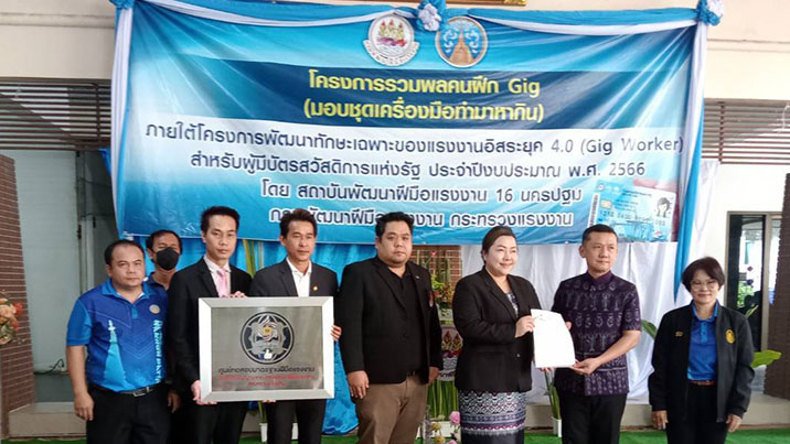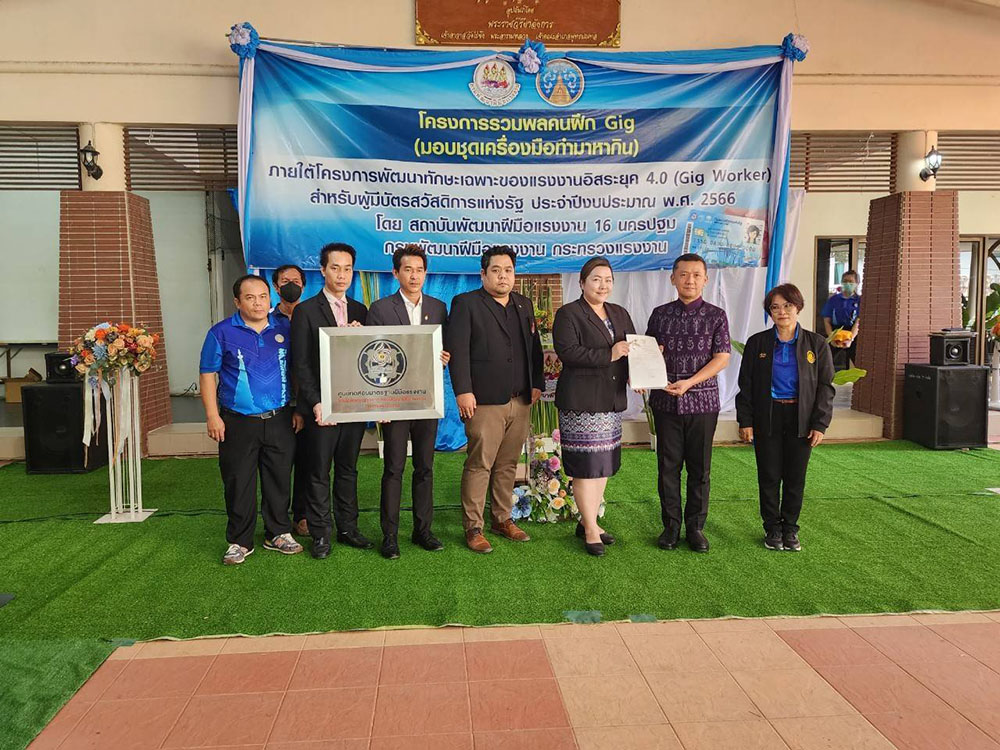 โดยได้รับเกียรติจากนายชยชัย แสงอินทร์ รองผู้ว่าราชการจังหวัดนครปฐม เป็นประธานในพิธีและมอบใบอนุญาตและเครื่องหมายศูนย์ทดสอบมาตรฐานฝีมือแรงงาน ในครั้งนี้ และร่วมพิธีมอบชุดเครื่องทำมาหากิน ในโครงการรวมพลคนฝึก Gig ภายใต้โครงการพัฒนาทักษะเฉพาะของแรงงานอิสระยุค 4.0 (Gig Worker) ณ ศูนย์บริหารจัดการผู้สูงอายุสามพราน ตำบลไร่ขิง อำเภอสามพราน จังหวัดนครปฐม