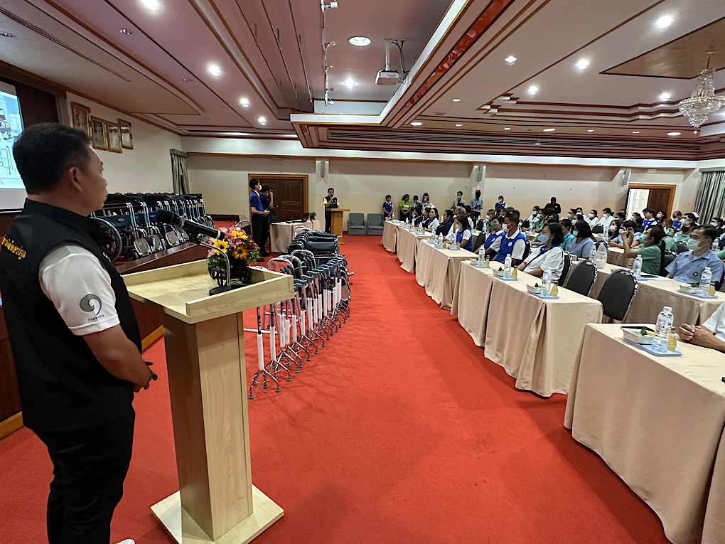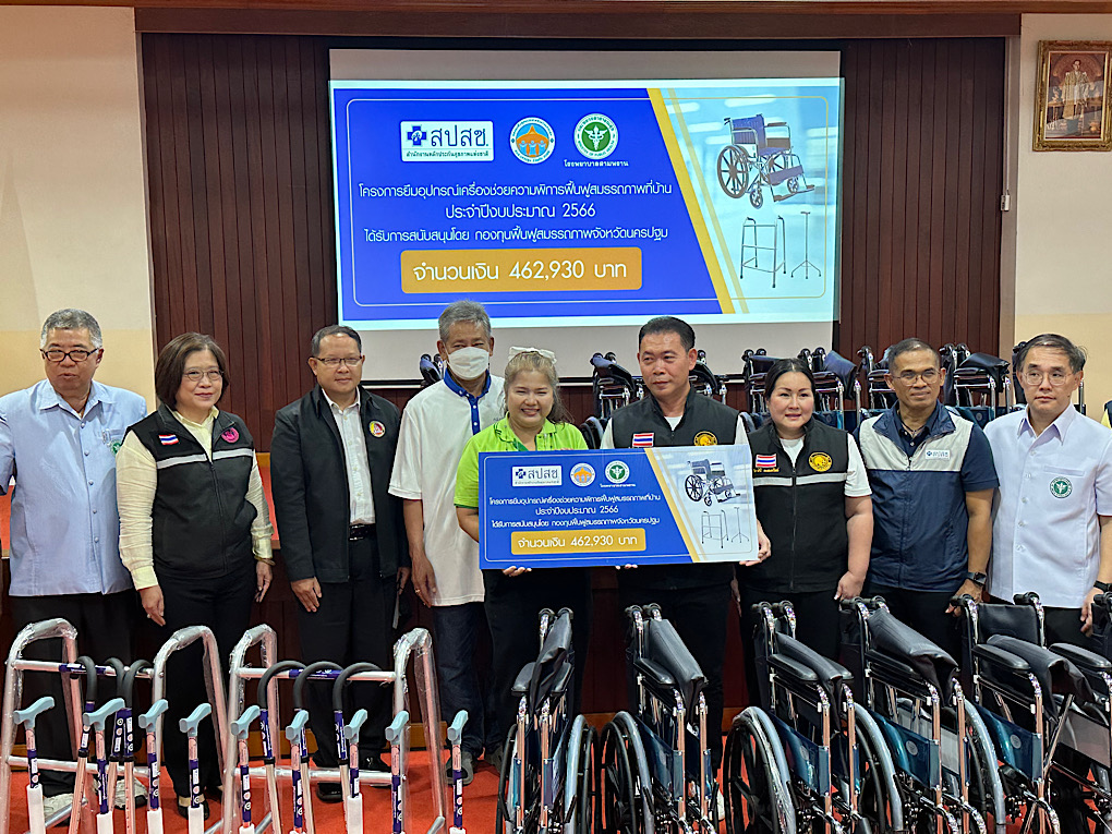 ซึ่งวันนี้เป็นการมอบอุปกรณ์เครื่องช่วยความพิการฟื้นฟูสมรรถภาพที่บ้าน ให้กับกลุ่มเป้าหมายของโครงการฯโดยผ่านทางรพ.สต.ในเขตอำเภอสามพรานจำนวน19แห่ง