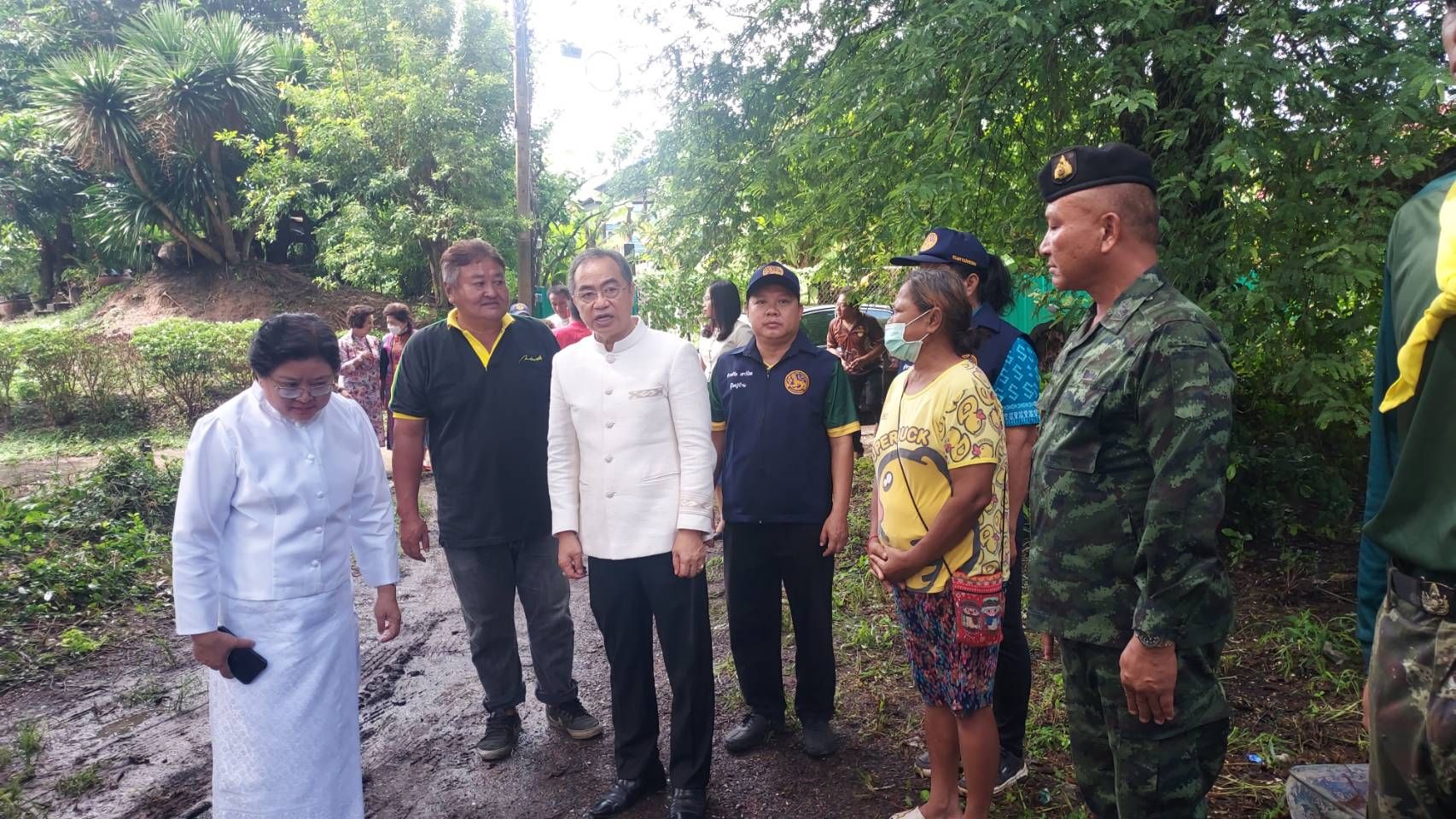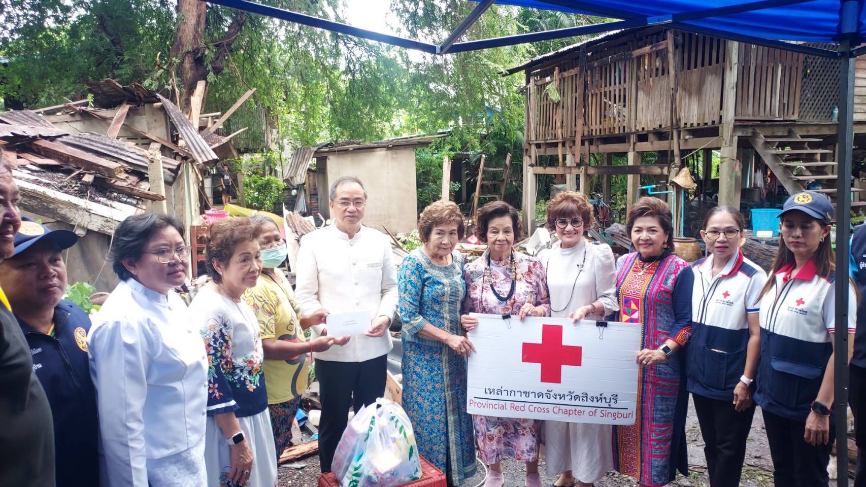 จากนั้น ช่วงบ่ายในวันเดียวกันนายสุพจน์ ยศสิงห์คำ ผู้ว่าราชการจังหวัดสิงห์บุรี / นายกเหล่ากาชาดจังหวัดสิงห์บุรี ลงพื้นที่นำเงินและสิ่งของอุปโภคบริโภค มามอบให้แก่ผู้ประสบภัยเพื่อช่วยบรรเทาความเดือดร้อนในเบื้องต้นให้แก่ผู้ประสบภัยดังกล่าว