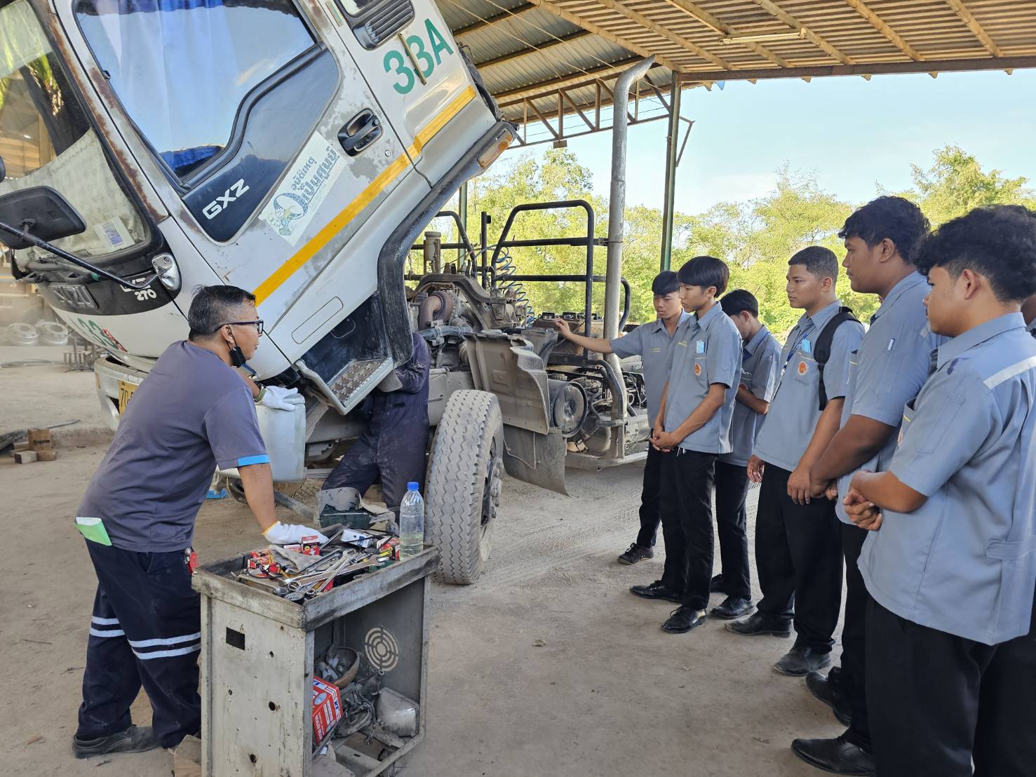 บริษัท ไลน์ ทรานสปอร์ต จำกัด ผู้ให้บริการขนส่งสินค้าทางบก ในกลุ่มธุรกิจเอสวีแอล กรุ๊ป(SVL Group) เปิดพื้นที่การเรียนรู้ ต้อนรับน้องๆ เยาวชนบางสะพาน ประเภทวิชาอุตสาหกรรม “สาขางานเทคนิคซ่อมบำรุงรถบรรทุก” ในหลักสูตรใหม่ ระดับ ปวส. ชั้นปีที่ 1 รวม 11 คน จากวิทยาลัยการอาชีพบางสะพาน ให้เข้ามาเรียนรู้ ทั้งภาคทฤษฎีและปฎิบัติหน้างาน ณ ศูนย์บริการซ่อมบำรุงรถบรรทุก ซึ่งเป็นศูนย์ซ่อมเฉพาะรถของ ไลน์ ทรานสปอร์ต พร้อมมีทีมช่างมืออาชีพ คอยให้คำแนะนำตลอดการเรียนรู้ในชั่วโมงเรียนทักษะงานซ่อมบำรุงรถบรรทุก
