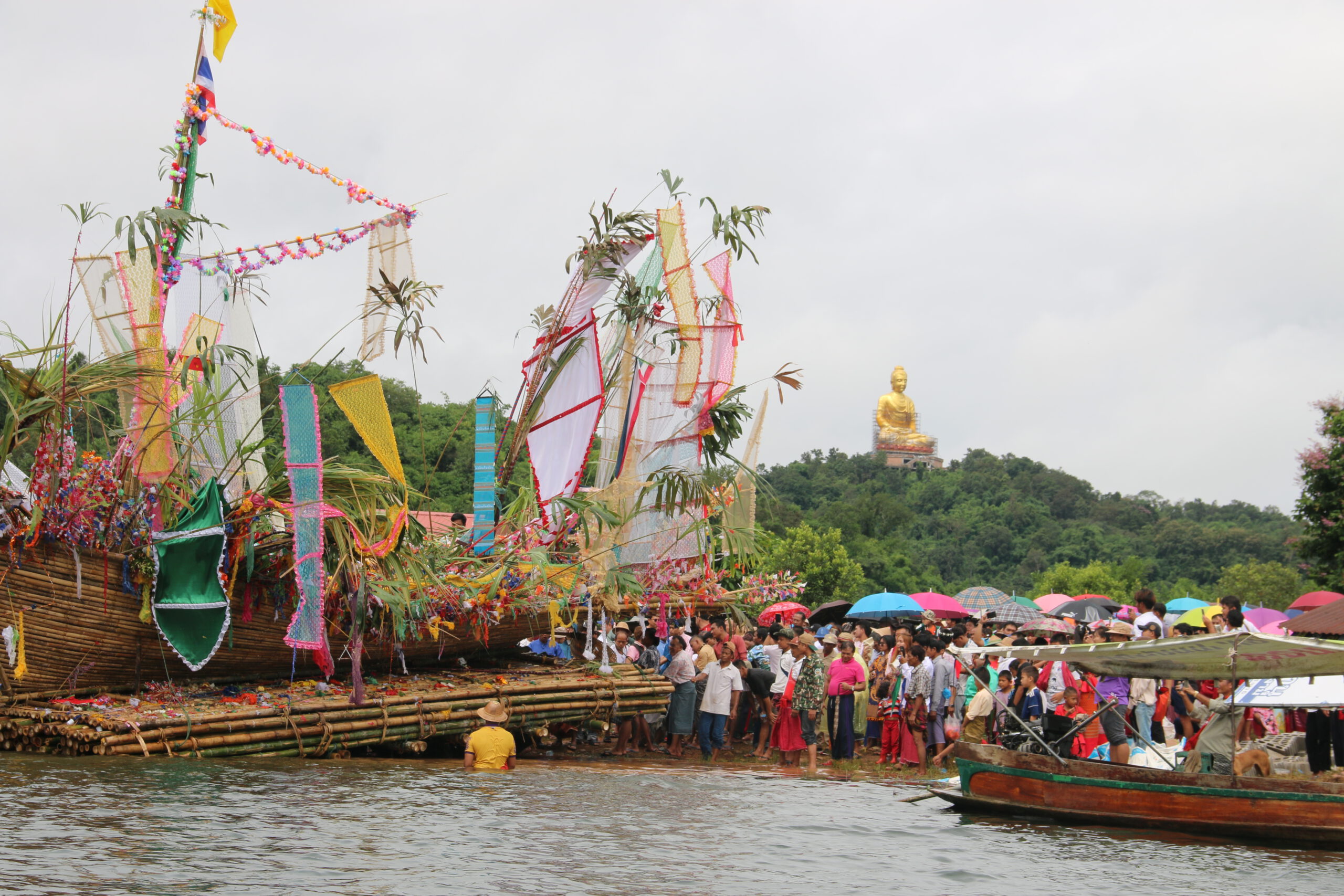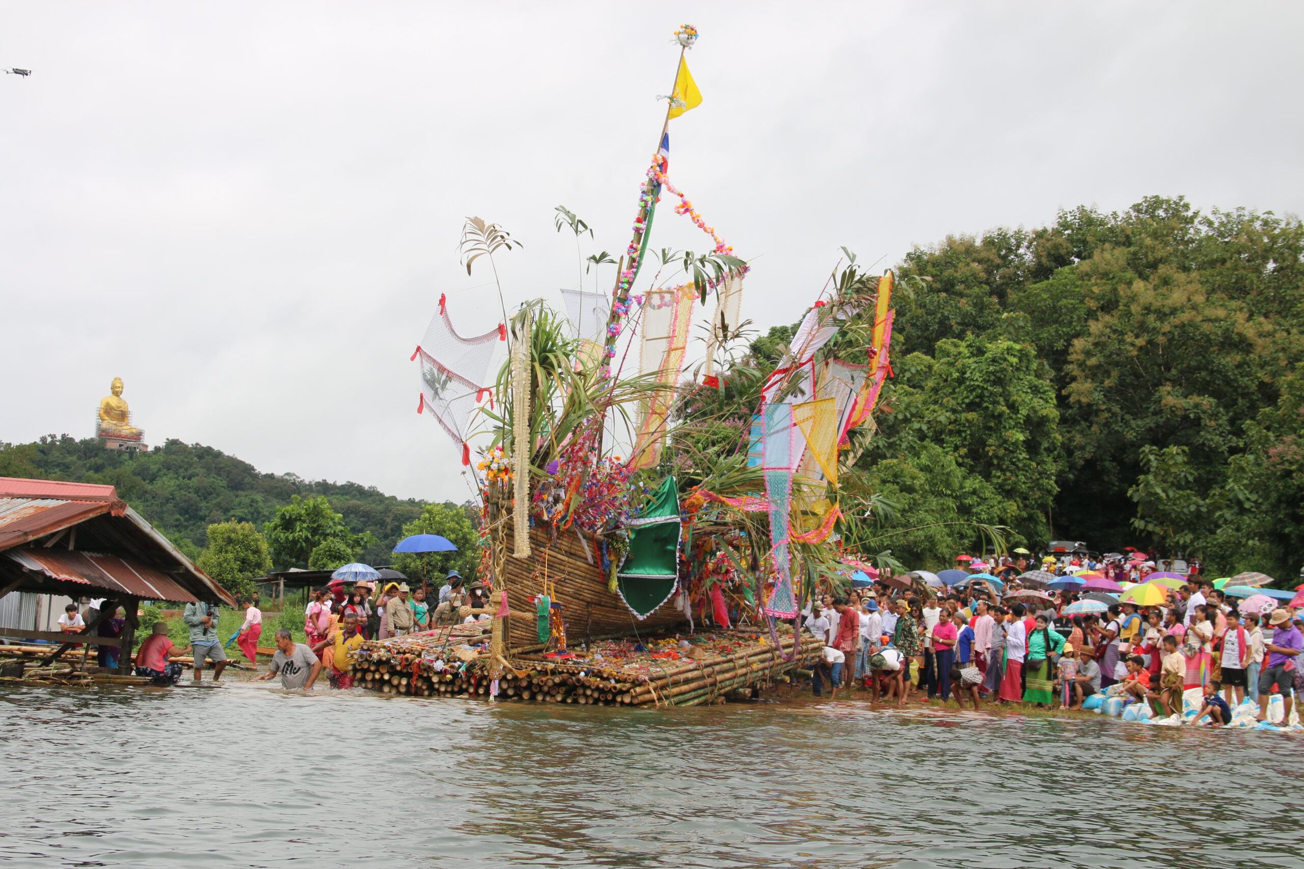 กาญจนบุรี นักท่องเที่ยว และประชาชน ร่วมงานประเพณีลอยเรือสะเดาะเคราะห์ งานบุญที่ยิ่งใหญ่ของชาวไทยเชื้อสายมอญสังขละบุรี ซึ่งปีนี้จัดงานยิ่งใหญ่อลังการ