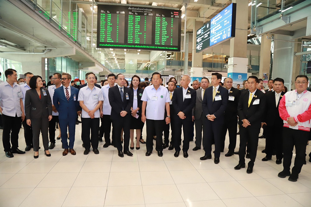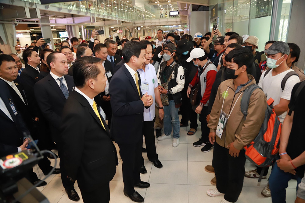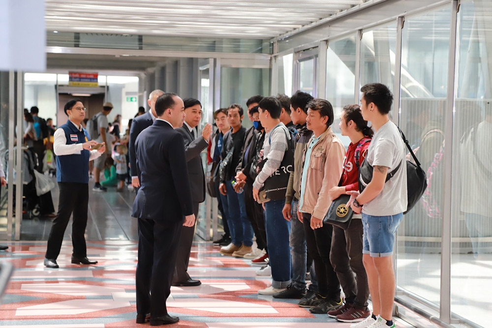 ในการนี้ นายปานปรีย์ พหิทธานุกร รองนายกรัฐมนตรีและรัฐมนตรีว่าการกระทรวงการต่างประเทศ นายสุทิน คลังแสง รัฐมนตรีว่าการกระทรวงกลาโหม นายพิพัฒน์ รัชกิจประการ รัฐมนตรีว่าการกระทรวงแรงงาน นายสันติ พร้อมพัฒน์ รัฐมนตรีช่วยว่าการกระทรวงสาธารณสุข พร้อมผู้บริหารหน่วยงานที่เกี่ยวข้องได้ร่วมในการต้อนรับด้วย โดย ทสภ. ได้ประสานหน่วยงานที่ปฏิบัติงาน ณ ทสภ. อาทิ กองบังคับการตรวจคนเข้าเมือง 2 สำนักงานศุลกากรท่าอากาศยานสุวรรณภูมิ ด่านควบคุมโรคติดต่อระหว่างประเทศ ร่วมกันอำนวยความสะดวกชาวไทยรวมถึงการส่งต่อผู้ที่ได้รับบาดเจ็บให้ได้รับการรักษาต่อไป