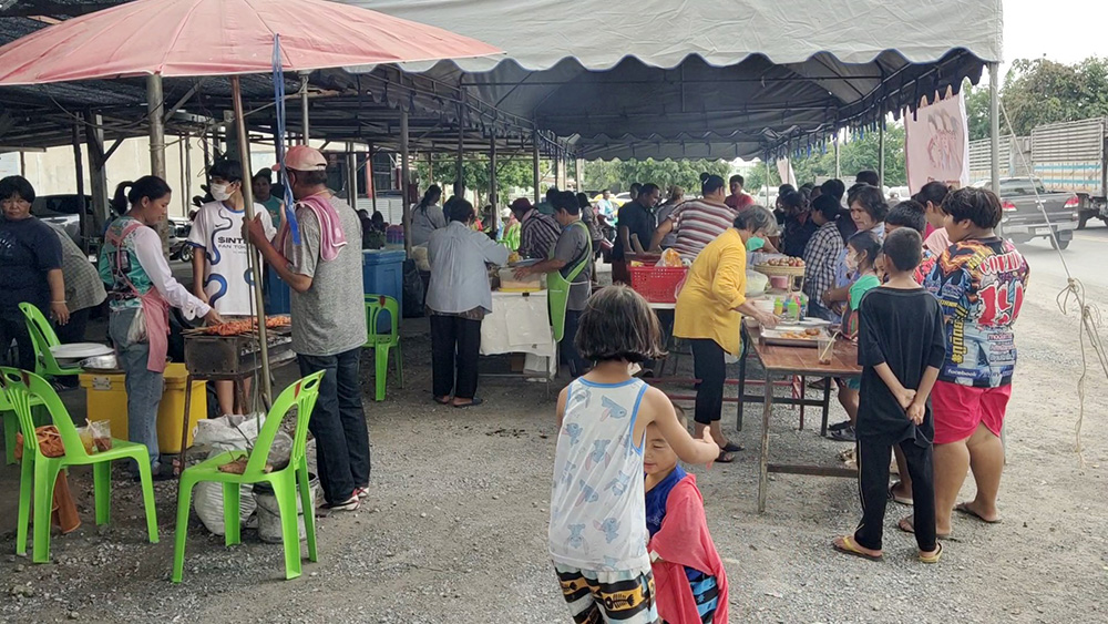 นายวีระธนา คงใจดี เจ้าของเต็นท์จำหน่ายรถยนต์มือสอง กล่าวว่าวันนี้ตนและกลุ่มพันธมิตรผู้ประกอบการ เต็นท์รถอู่ซ่อมรถยนต์หลายรายและมูลนิธิเสมอกันกู้ภัยสุพรรณบุรี ได้ร่วมกันจัดกิจกรรมนำอาหาร คาวหวาน ส้มตำ ข้าวเหนียว ไก่ย่าง และเครื่องดื่มต่างๆอีกมากมาย มาให้พี่น้องประชาชนทั้งในพื้นที่และที่เดินทางผ่านไปมาได้รับประทาน กันอย่างอิ่มหนำสำราญ นอกจากนี้ยังมีนักร้องจากหลายค่ายเพลง มาร้องเพลงขับกล่อมให้ประชาชนที่มารับประทานอาหารได้ฟังเพื่อคลายเครียด