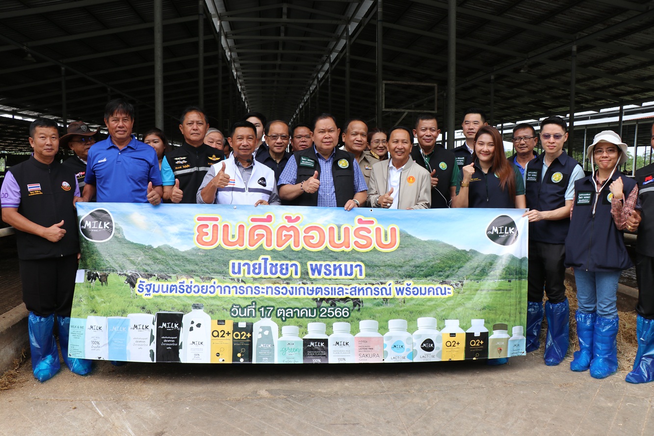 จากนั้นรัฐมนตรีช่วยว่าการกระทรวงเกษตรและสหกรณ์ พร้อมคณะ ได้ลงพื้นที่เยี่ยมชมระบบการบริหารจัดการภายในฟาร์มโคนม โรงงานผลิตนมและฟาร์ม M Milk Dairy Farm จังหวัดกาญจนบุรี เป็นผู้ผลิตนมไร้แลคโตส รายแรกของไทย อีกทั้งยังเป็นโรงงานผลิตนมและเลี้ยงวัวนมขนาดใหญ่ มีวัวประมาณ 1,000 ตัว บนพื้นที่กว่า 1,000 ไร่ และยังเป็นศูนย์คัดเลือกสายพันธ์วัวและเป็นแหล่งปลูกพืชอาหารสัตว์ ถือเป็นสมาร์ทฟาร์มมิ่งต้นแบบอีกด้วย