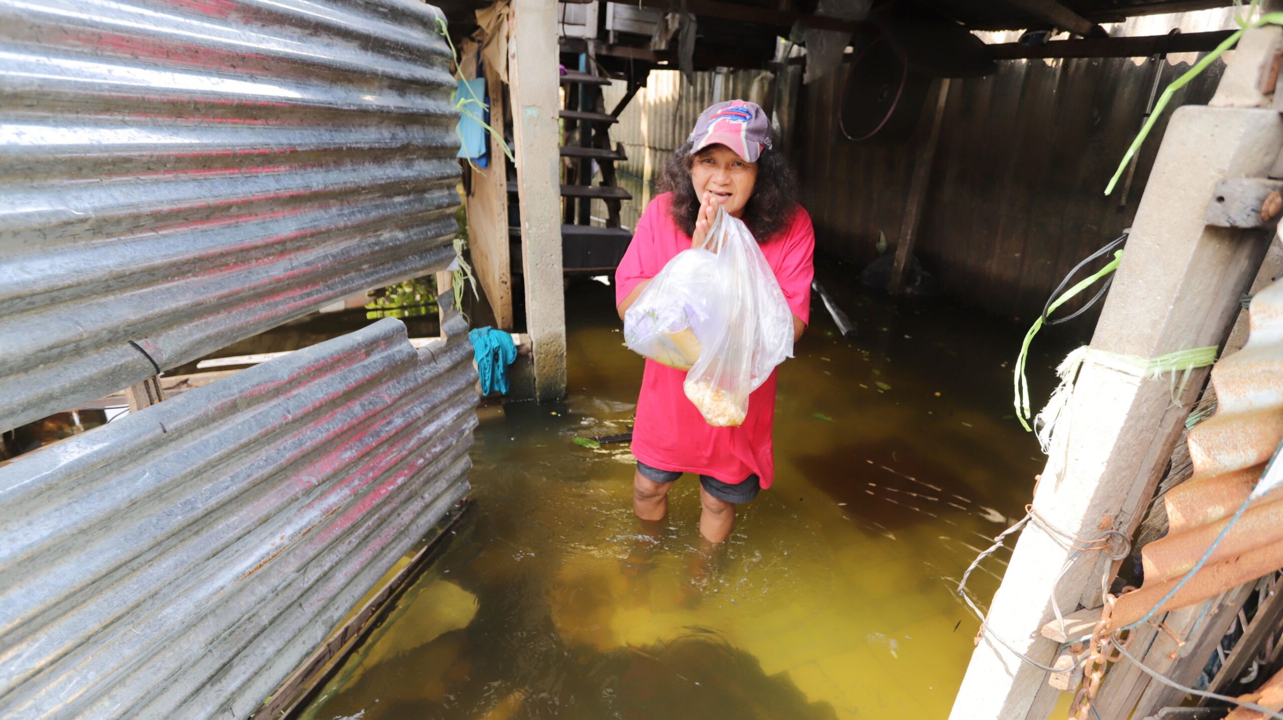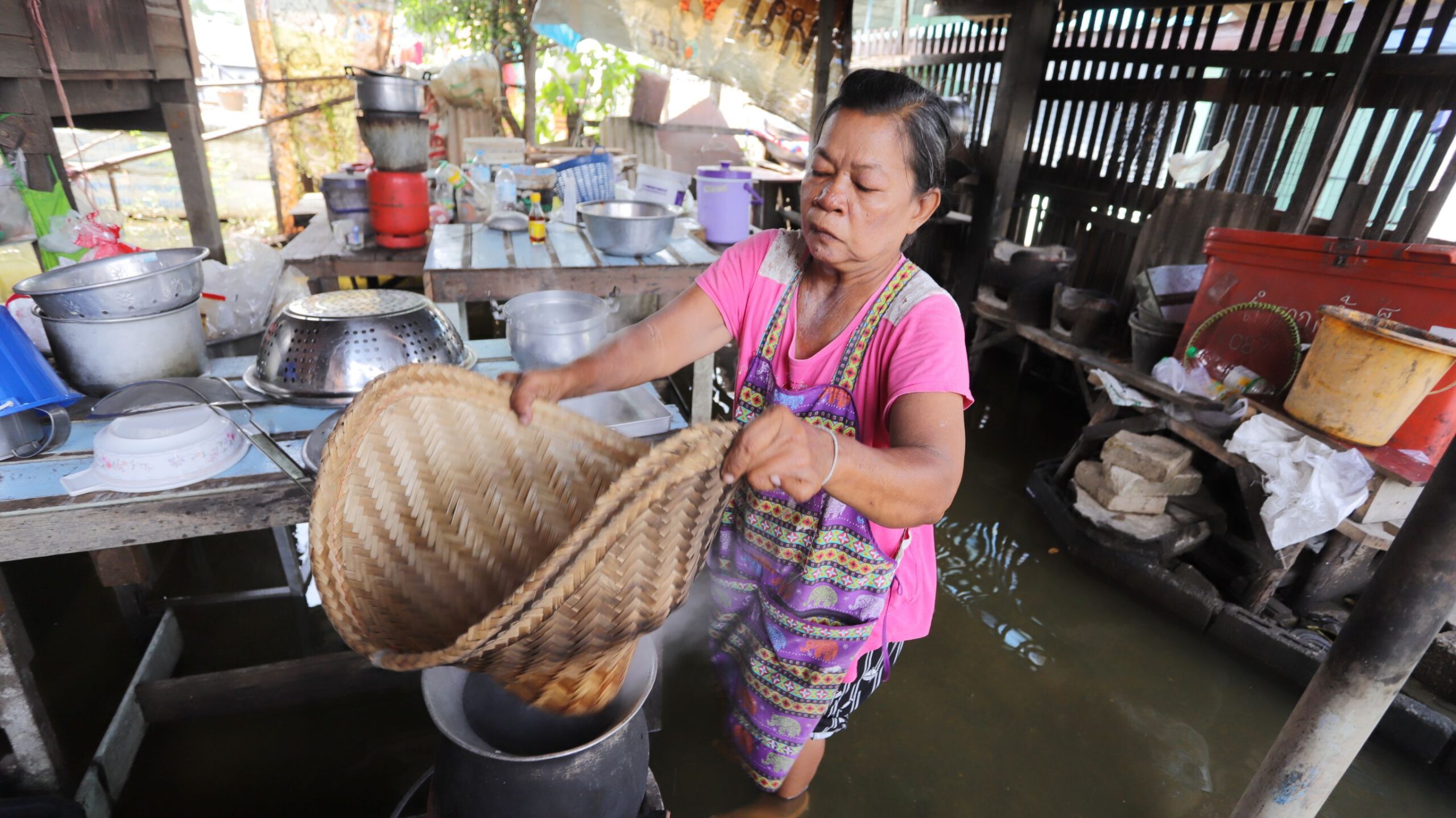ระดับน้ำเจ้าพระยาล้นตลิ่งหลายพื้นที่เมืองปทุมฯเริ่มปริ่มน้ำ