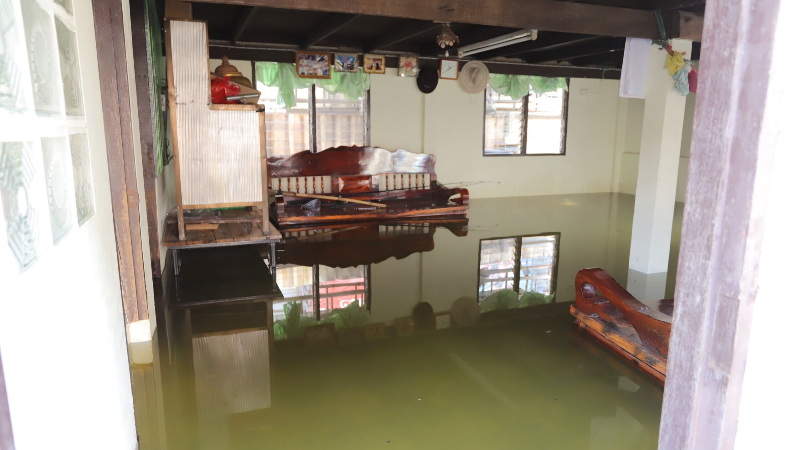 เมื่อเวลา 15.00 น. วันที่ 17 ต.ค.2566 ผู้สื่อข่าวลงพื้นที่สำรวจบ้านประชาชนที่อาศัยอยู่ริมแม่น้ำเจ้าพระยา และระดับน้ำในคลองบางหลวง ต.บ้านฉาง อ.เมือง จ.ปทุมธานี น้ำได้เอ่อล้นตลิ่งเข้าท่วมในพื้นที่ชุมชนหลังวัดบางหลวงระดับน้ำท่วมอยู่ที่ประมาณ 30-40 เซ็นติเมตร และเป็นพื้นที่ที่อยู่ติดริมแม่น้ำเจ้าพระยา ล้อมด้านหลังด้วยคลองบางหลวง น้ำจึงเข้าท่วมในชุมชนได้หลายทางและรวดเร็ว ขณะนี้ชาวบ้านต้องเฝ้าระวังระดับน้ำกันเอง หวั่นเกรงว่าระดับน้ำจะสูงกว่านี้อีก โดยขณะนี้ชาวบ้านต้องใช้ชีวิตประจำวันในการทำอาหารกลางน้ำเพราะน้ำเอ่อล้นเข้าท่วมบ้านเรือนแล้ว