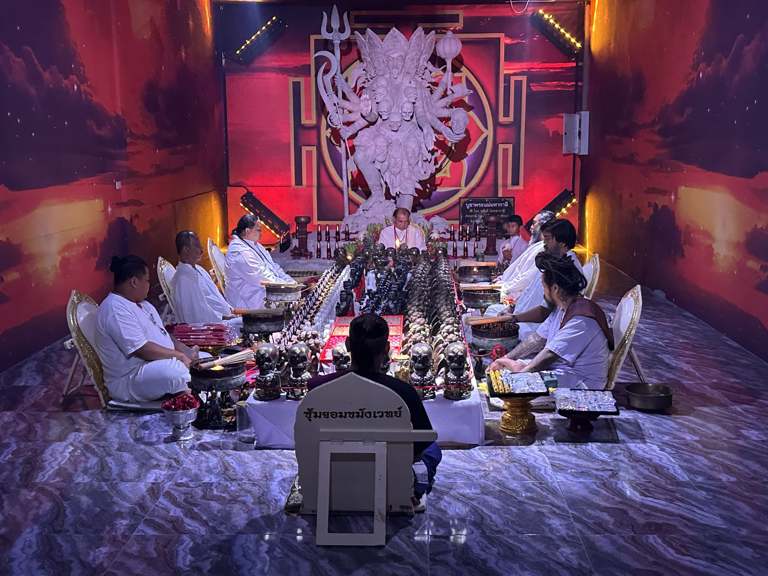 ซึ่งเครื่องราง วัตถุมงคล ที่อาจารย์ แต่ละสำนักนำมาทำพิธีเสก ในครั้งนี้ล้วนแต่เป็น เครื่องราง วัตถุมงคล ที่ ศิษย์แต่ละสำนักอยากนำไปบูชาเสริมในด้านต่างๆ เช่น มหาเสน่ห์ ค้าขาย เมตตามหานิยม โชคลาภ รวมถึงแคล้วคลาดปลอดภัย การทำพิธีในครั้งนี้ อาจารย์แขก รือเสาะ ได้กล่าวว่า นี่ถือเป็นมิติใหม่ในการเสก เครื่องราง วัตถุมงคล ที่ทำกันในถ้ำพระแม่มหากาลี ซุ้มจอมขมังเวทย์ ที่ประดับด้วยไฟสุดยิ่งใหญ่อลังการ