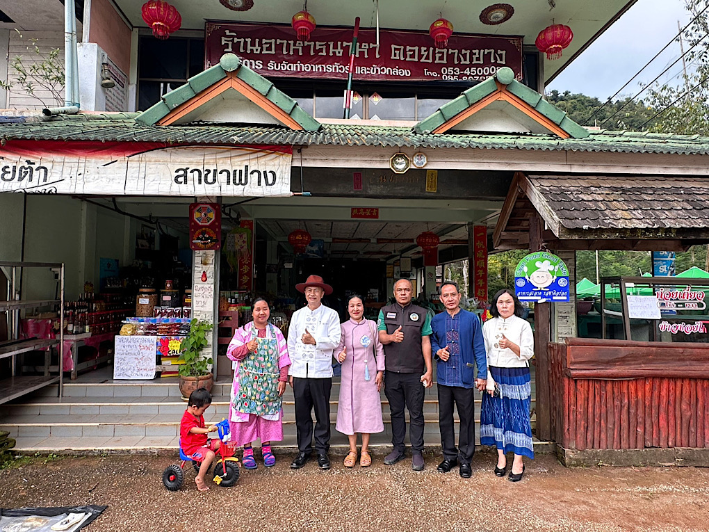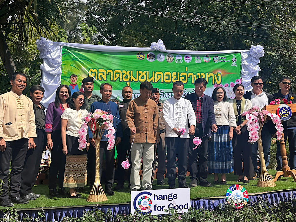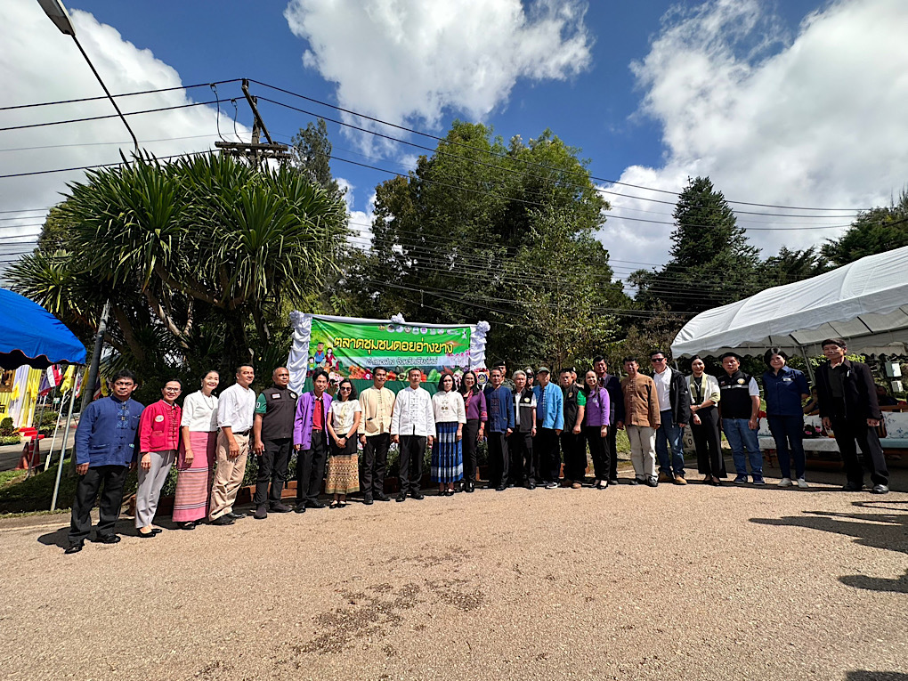 ว่าที่ร้อยตรี นพรัตน์ ศุภกิจโกศล นายอำเภอฝาง เป็นประธานเปิดตลาดชุมชนดอยอ่างขาง เพื่อเป็นการขับเคลื่อนนโยบายโครงการอำเภอบำบัดทุกข์บำรุงสุข แบบบูรณาการอย่างยั่งยืน และภารกิจการส่งเสริมเศรษฐกิจฐานราก การผลิต การตลาด และการจำหน่าย โดยมีวัตถุประสงค์เพื่อขับเคลื่อนและสร้างกลไกการทำงาน ร่วมกันกับภาคีเครือข่ายทั้ง 7 ภาคในระดับพื้นที่ และเพื่อช่วยเหลือพี่น้องประชาชนที่ประกอบอาชีพทางการเกษตร กลุ่มสัมมาชีพ ผู้ประกอบการ OTOP ได้มีช่องทางการตลาด มีสถานที่จำหน่ายสินค้าได้อย่างต่อเนื่อง เป็นการส่งเสริมการกระจายรายได้สู่ชุมชนจากนักท่องเที่ยวที่เดินทางมาเที่ยวในพื้นที่อำเภอฝาง