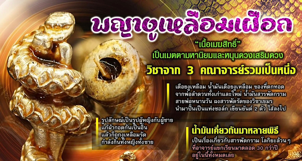 เขาก็เลยห้าม อาจารย์แขกจึงแก้เคล็ดด้วยการใช้เนื้อเมฆสิทธิ์ ในการทำงูเหลือมเผือก เป็นทั้งเมตตามหานิยมและยังหนุนดวงด้วย