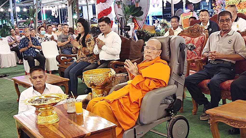 ที่เต็นท์รถยนต์วีระเจริญยนต์ ตั้งอยู่ริมถนนสายดอนเจดีย์-สระกระโจม อำเภอดอนเจดีย์ จังหวัดสุพรรณบุรี วันที่ 30 ตุลาคม 2566 นายวีระธนา คงใจดี เจ้าของเต็นท์จำหน่ายรถยนต์มือสอง พร้อมครอบครัว คงใจดี ได้จัดพิธีทำบุญถวายภัตตาหารเพลพระสงฆ์ เนื่องในโอกาสครบรอบวันเสียชีวิตพ่อลำยอง แม่และญาติ พี่น้องลูกหลาน ที่ล่วงลับ รวม 32 คน ที่บริเวณเต็นท์รถยนต์ โดยช่วงค่ำวันที่ 29 ตุลาคม ได้นิมนต์พระสงฆ์ 9 รูป สวดเจริญพุทธมนต์เย็นโดยมีพระครูสุวรรณธรรมานุยุต หรือ หลวงพ่อสมบุญ ปิยธมฺโม อายุ 102 ปีเจ้าอาวาสวัดลำพันบอง พระเกจิดังแห่งเมืองสุพรรณบุรี เป็นประธานฝ่ายสงฆ์ มีนายบุญฤทธิ์ เยี่ยมยอด นายอำเภอดอนเจดีย์ นายถวิล ทองมาก เจ้าของร้านพูนทรัพย์ยางยนต์ สาขาดอนเจดีย์ ผู้ประกอบการเต็นท์รถยนต์ พ่อค้าแม่ค้า พี่น้อง ญาติมิตรประชาชนที่เคารพนับถือ มาร่วมพิธีกันอย่างเนืองแน่น