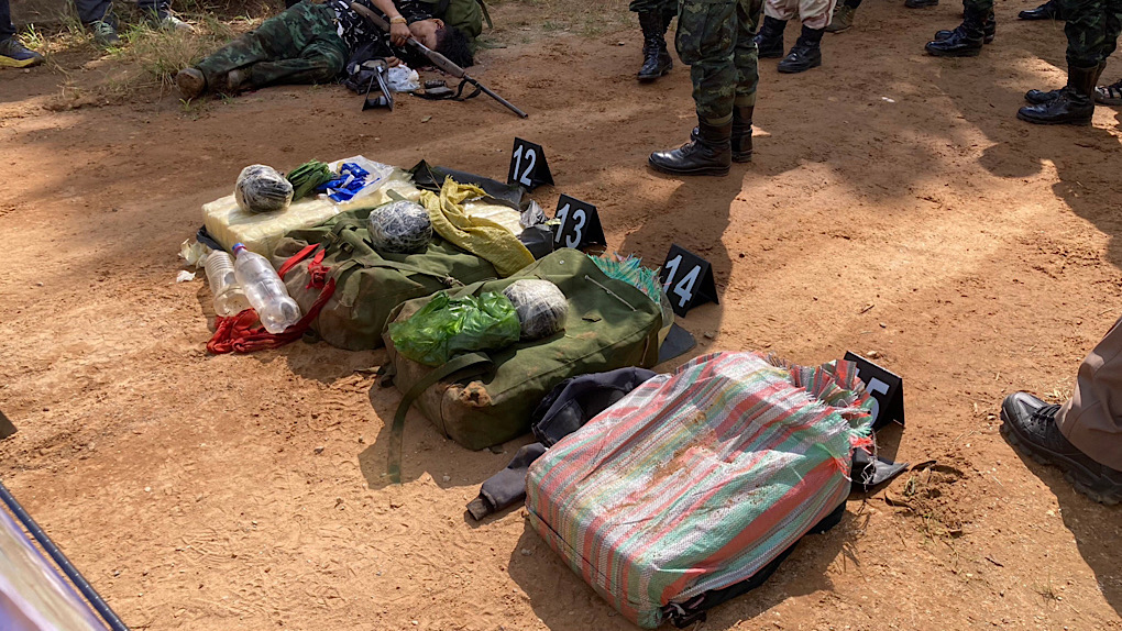 จากนั้นได้ยิงสู้กันนาน5นาที ทหารยังไม่กล้าเข้าเคียรพื้นที่รอจนรุ่งสางจึงได้เข้าตรวจสอบพบว่ามี ผู้ลักลอบขนเสียชีวิตเบื้องต้น2ราย มือยังถือปืนแน่น นอนตายบนสะพาน และอีกศพตกลงไปตายที่ล้ำห้วยแม่เผอะอีก1ศพ และตรวจพบสัมภาระเป็นยาเสพติดอีก 5เป้ดัดแปลง พบที่กลางสะพาน2เป้พร้อมผู้ตาย และช่องทางเดิน3เป้ จากการสอบถามทางทหารทราบว่าเป็นการปฏิบัติการลาดตระเวนปกติทุกวัน โดยวันนี้ได้เวรตรวจพื้นที่ทางเส้นแนวตะแขบทางทิศตะวันตก จึงได้พบและปะทะกัน จาการที่เจ้าหน้าที่ทุกฝ่ายเข้าทำการตรวจสอบพบศพ2 ศพ มีปืนยาวเบอร์12 และอีกศพตกไปตายที่ลำห้วย มีลูกระเบิดมือจำนวน 1 ลูก พบ ยาบ้า 5 เป้ๆละ 100,000 เม็ด จำนวนประมาณ 500,000 เม็ด ฝิ่นดิบจำนวน3 ก้อนหนักประมาณ 3.6 กิโลกรัมโดยประมาณ