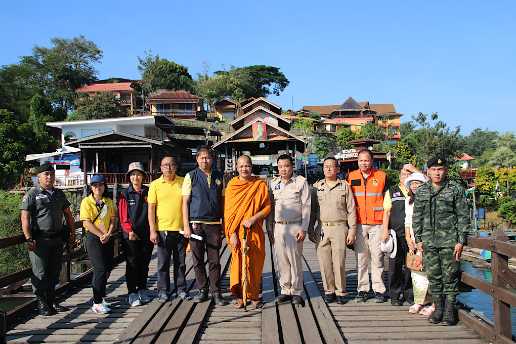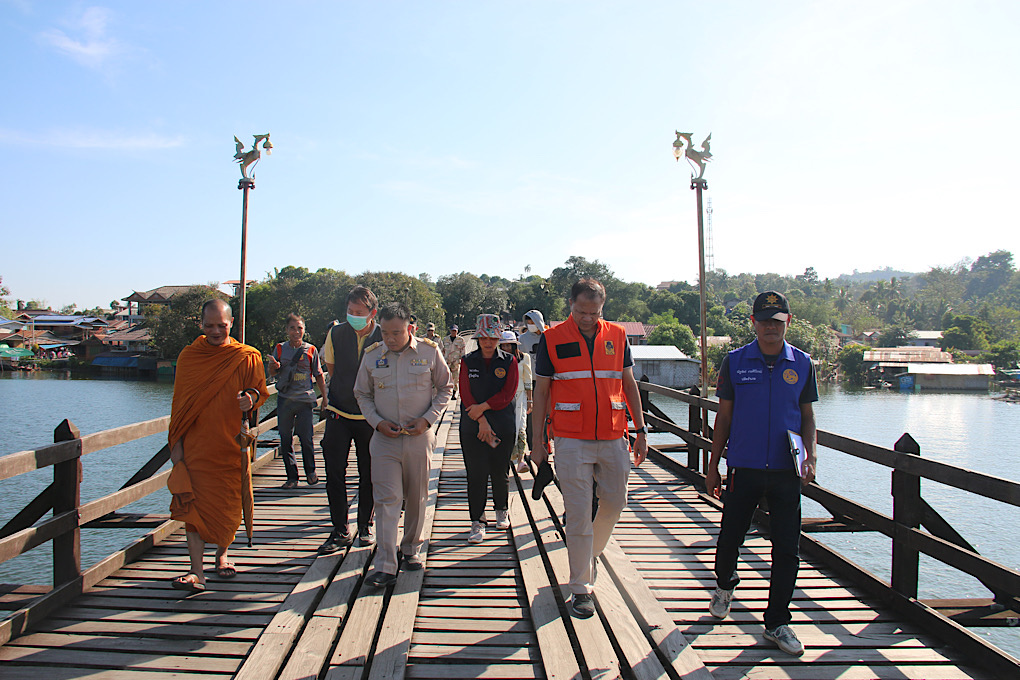 วันที่ 21 พฤศจิกายน 2566 จากกรณีที่เมื่อวานนี้ ที่ นายสุทธิพร ศิวเวทพิกุล นายอำเภอสังขละบุรี พระมหาสุชาติ สิริปัญโญ เจ้าอาวาสวัดวังก์วิเวการาม นำนายภักดี หาญพัฒนะนุสรณ์ วิศวกรโยธาชำนาญพิเศษ สำนักงานโยธาธิการและผังเมือง สำนักงานโยธาธิการ จังหวัดกาญจนบุรี ผู้อำนวยการกองช่างเทศบาลตำบลวังกะ ทหารหน่วยเฉพาะกิจลาดหญ้า ตชด.134 ลงตรวจสอบสะพานไม้อุตตมานุสรณ์ หรือสะพานมอญ หลังเกิดเหตุการณ์แผ่นดินไหวขนาด4.0 ริกเตอร์ เมื่อเวลา03.07 น. ของเช้าวันที่ 19 พฤศจิกายน 2566 ในพื้นที่ตำบลหนองลู อำเภอสังขละบุรี จังหวัดกาญจนบุรี