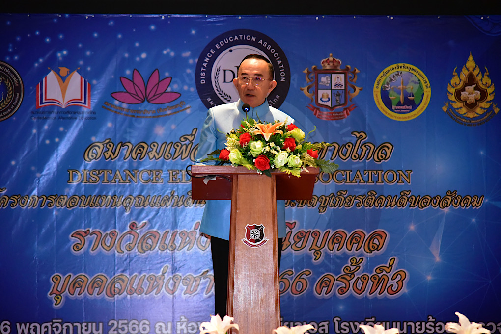 วันที่ 26 พฤศจิกายน 2566 ที่ห้องเตมียเวส ตึกบัญชาการโรงเรียนนายร้อยตำรวจ อำเภอสามพราน จังหวัดนครปฐม ม.ล.ปนัดดา ดิศกุล สมาชิกวุฒิสภา เป็นประธานมอบประกาศเกียรติคุณและโล่เชิดชูเกียรติคนดีของสังคม รางวัลแห่งปี “ปูชนียบุคคล” บุคคลแห่งชาติ 2566 ครั้งที่ 3 โดย รศ.ดร.สันติ พิมพ์ใจใส ผู้อำนวยการโครงการตอบแทนคุณแผ่นดินยกย่องเชิดชูเกียรติ คนดีของสังคม ครั้งที่ 3 กล่าวว่า สมาคมเพื่อการศึกษาทางไกล ได้จัดพิธีมอบประกาศเกียรติคุณและโล่เชิดชูเกียรติคนดีของสังคม รางวัลแห่งปี “ปูชนียบุคคล” บุคคลแห่งชาติ 2566 ครั้งที่ 3 ขึ้นเพื่อเป็นการยกย่องเชิดชูเกียรติให้กับคณะผู้บริหาร เจ้าหน้าที่ บุคลากรในสมาคมเพื่อการศึกษาทางไกล รวมทั้งยกย่องเชิดชูเกียรติให้กับบุคลากรหน่วยงานของรัฐและเอกชน ที่เสียสละอุทิศตนเพื่อสังคมและประเทศชาติ ตลอดจนยกย่องเชิดชูเกียรติแก่นักศึกษาและเยาวชน ผู้ที่ประพฤติตนเป็นคนดีและเป็นแบบอย่างที่ดีแก่สังคม