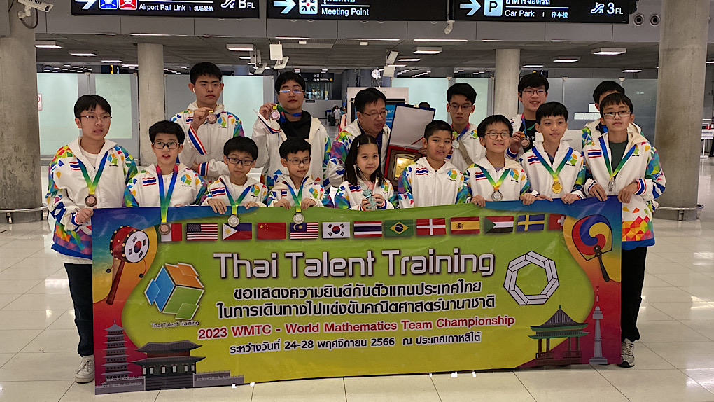 *****เมื่อเวลา 22.00น.วันที่ 28 พ.ย.2566 นายภูมิเทพ คลังอุไร ประธานโครงการ Thai Talent Training และ Coach ของทีมประเทศไทยพร้อมคณะนักเรียน เดินทางถึงประเทศไทย เที่ยวบิน TG 653 เครื่องลง 20.49 น. หลังกลับจากนำตัวแทนประเทศไทย ไปเข้าร่วมการแข่งขันคณิตศาสตร์นานาชาติ 2023 WMTC – World Team Mathematics Championship ณ ประเทศเกาหลีใต้ ระหว่างวันที่ 24 – 28 พฤศจิกายน 2566