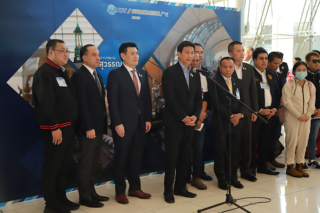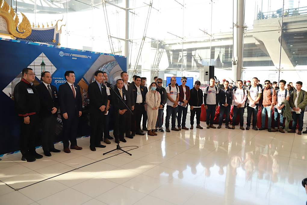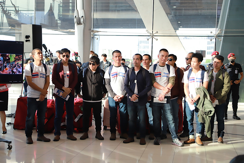 *****เมื่อเวลา 16.00น.วันที่ 30 พ.ย.2566 ที่ประตู 10 ชั้น 2 อาคารผู้โดยสารขาเข้า สนามบินสุวรรณภูมิ นายเศรษฐา ทวีสิน นายกรัฐมนตรีและรัฐมนตรีว่าการกระทรวงการคลัง ให้การต้อนรับแรงงานไทยที่ได้รับการปล่อยตัวจากการถูกจับเป็นตัวประกันโดยกลุ่มฮามาส ผ่านทางวีดีโอ zoom โดยมี นายปานปรีย์ พหิทธานุกร รองนายกรัฐมนตรีและรัฐมนตรีว่าการกระทรวงการต่างประเทศ และ นายอารี ไกรนรา เลขานุการรัฐมนตรีว่าการกระทรวงแรงงาน เป็นตัวแทนรัฐบาลไทยมาต้อนรับคนไทยล็อตแรกที่ถูกปล่อยตัวและกลับสู่ประเทศไทย รวม 17 คน ที่ได้รับการปล่อยตัวเมื่อวันที่ 24 พ.ย.ที่ผ่านมา เบื้องต้นทุกคนได้รับการตรวจสุขภาพจากประเทศอิสราเอลแล้ว โดยเดินทางจากประเทศอิสราเอลถึงไทย ด้วยสายการบิน EL AL เที่ยวบินที่ LY081 เครื่องลงเวลา 15.10 น.