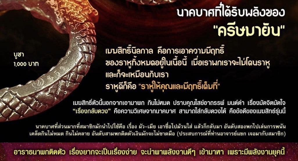 “ราหูให้คุณและมีฤทธิ์เต็มที่”. เมฆสิทธิ์ตัวนี้นอกจากเอามาพก กินไม่หมด ปราบคุณไสย์อาถรรพั มนต์ดำ เรื่องมัดจิตมัดใจ “เรื่องกลับดวง” คือความวิเศษจากนาคบาศ สามาถใส่กลับดวงต้ คือข้อดีของเมฆสิทธ์รุ่นนี้ ตอกโค๊ด รันเลข หล่อในฤกษ์วันสุริยคลาส “เคล็ดกินตามนาฬิกา เพื่อไปตามกาลเวลา”