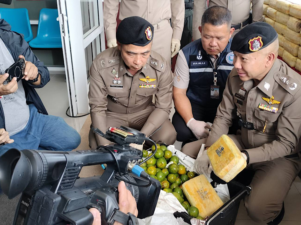 ทางตำรวจภูธรภาค5 โดย พลตำรวจโท กฤตธาพล ยี่สาคร ผู้บัญชาการตำรวจภูธรภาค5 นายชัชวาล ปัญญา รองผู้ว่าจังหวัดเชียงใหม่ พลตำรวจตรี ธวัชชัย พงค์วิวัฒนชัย ผู้บังคับการตำรวจภูธรจังหวัดเชียงใหม่ ร่วมกันมาตรวจสอบยาบ้าและร่วมแถลงข่าวในวันนี้ว่า ทาง พันตำรวจเอก เสกสรร ขันคำนันต๊ะ ผู้กำกับการสถานีตำรวจภูธร ได้ทราบเรื่องว่าเมื่อ เมื่อวันที 6 ธันวาคม 2566 เวลาประมาณ 15.00 น.ทางตำรวจภูธรเชียงดาว จังหวัดเชียงใหม่ ได้รับโทรศัพท์จากพลเมืองดีว่ามีสิ่งของต้องสงสัยว่าจะมีสิ่งผิดกฏหมายซุกซ่อนในรถบรรทุก6ล้อที่บรรทุกส้มมา ทางตำรวจภูธรเชียงดาวจึงได้นำกำลังเข้าตรวจสอบรถคันดังกล่าวที่จอดอยู่หน้าโรงเรียนเชียงดาววิทยาคม ทางตำรวจได้กลิ่นยาบ้าในลังส้ม จึงได้นำรถคันดังกล่าวมาตรวจสอบที่สถานีตำรวจภูธรเชียงดาวแล้วพบว่าในลังส้มนั้นทั้งหมด ที่พบจำนวน 62 ใบ มียาบ้าที่ซุกซ่อนปะปนกับส้ม มีแพ็คยาบ้าจำนวน 490 ห่อ ซึ่งนับจำนวนยาบ้าได้ประมาณ 4,900,000 เม็ด โดยประมาณ