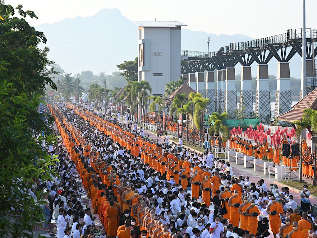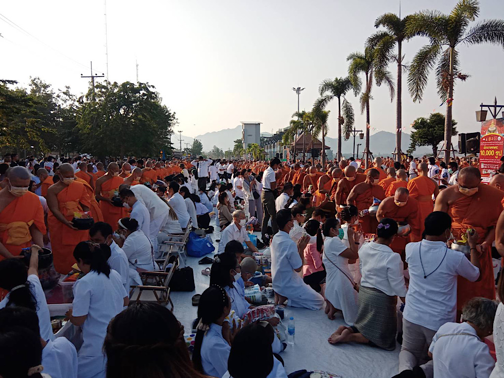 กาญจนบุรี ประชาชนเกือบ 20,000 คนร่วมตักบาตรพระสงฆ์ 10,000 รูป ฉลอง 192 ปี เมืองกาญจน์