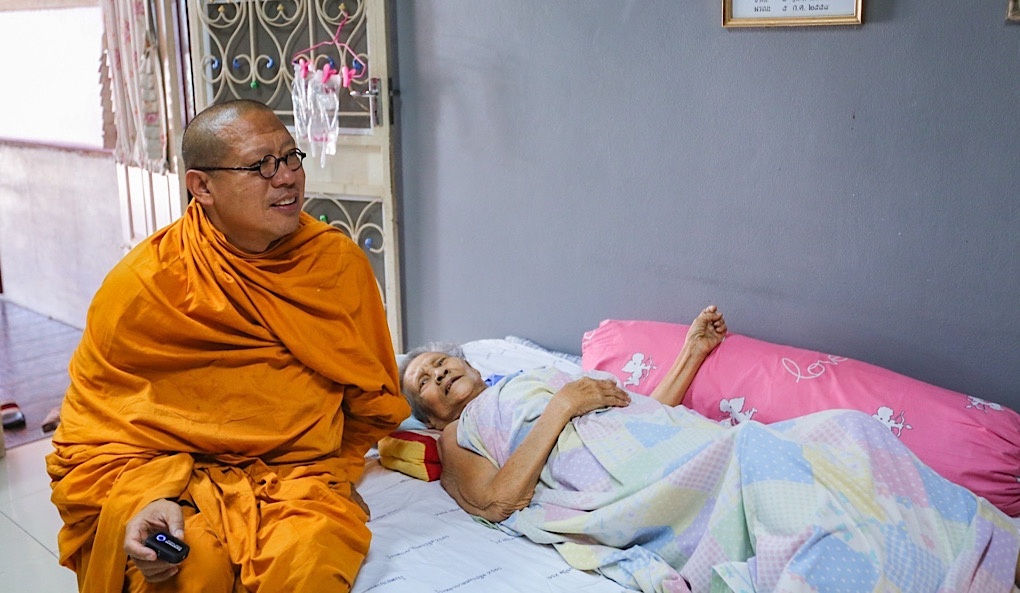 “ครอบครัวนี้ถือว่าดีที่ยังมีการดูแลบุพการี ไม่ทอดทิ้งและพยายามหาหนทางในการดูแลคนในครอบครัว ซึ่งต้องขอชื่นชนในความกตัญญูที่มีอยู่ซึ่งเตียงที่ได้มาในวันนี้ เป็นเตียงของโยมเบ็ญจวรรณ ริทเทอร์ ซึ่งเป็นโยมน้องสาว และเป็นส่วนหนึ่งที่อยู่ในหลายๆคนที่มาร่วมกันทำบุญ ซึ่งการดูแลในเรื่องเกิด แก่ เจ็บและตายก็เป็นภารกิจของวัดไผ่ล้อมที่จะดำเนินต่อไป และขออนุโมทนาบุญกับกองทัพบุญของวัดไผ่ล้อมด้วย” หลวงพี่น้ำฝน กล่าวปิดท้าย